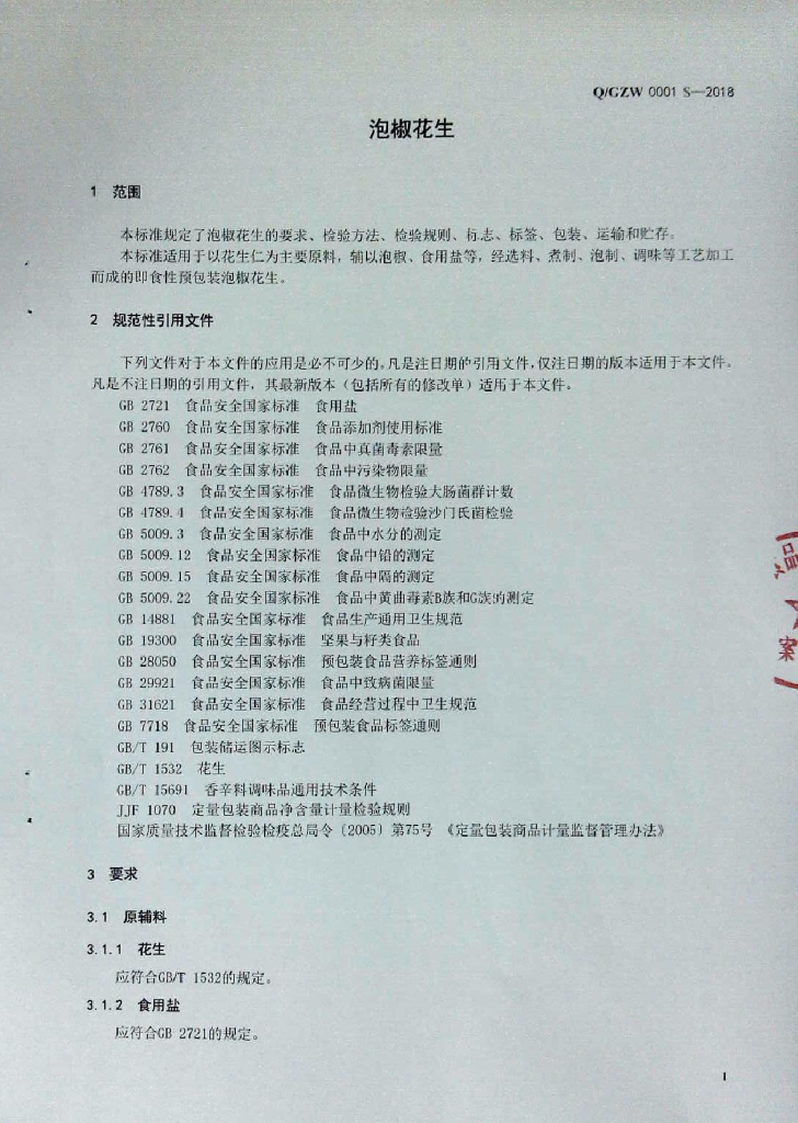 Q/GZW 0001S-2018 泡椒花生