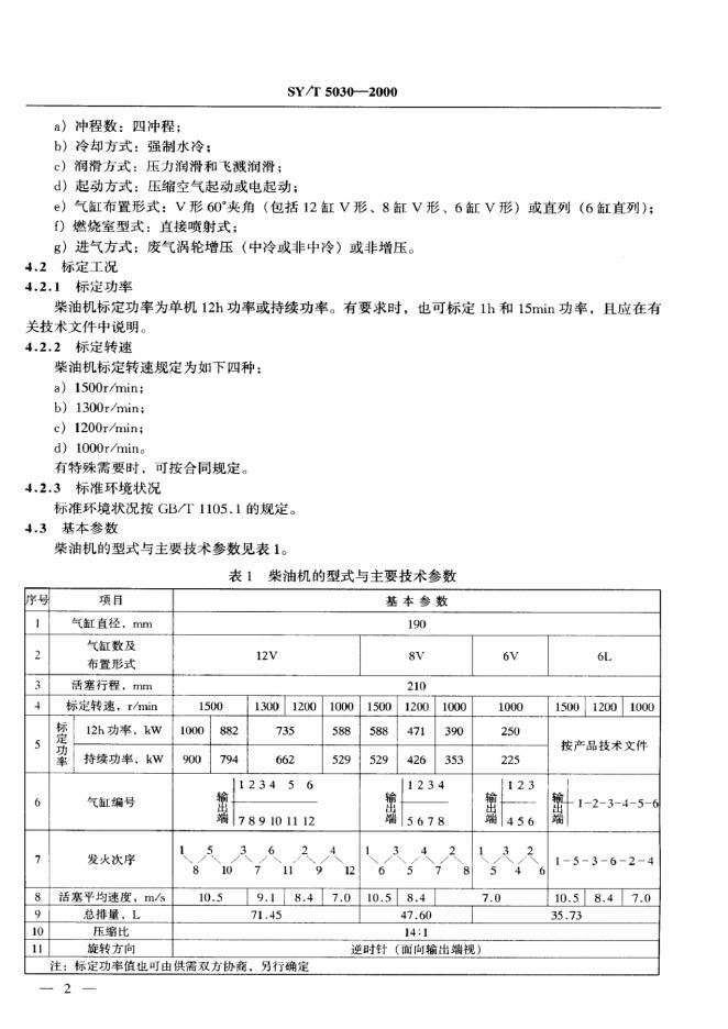 SY 5030-1993 石油钻机用190系列柴油机