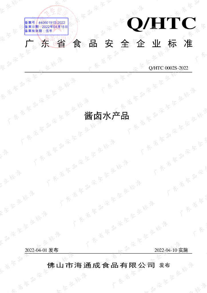 Q/HTC 0002S-2022 酱卤水产品