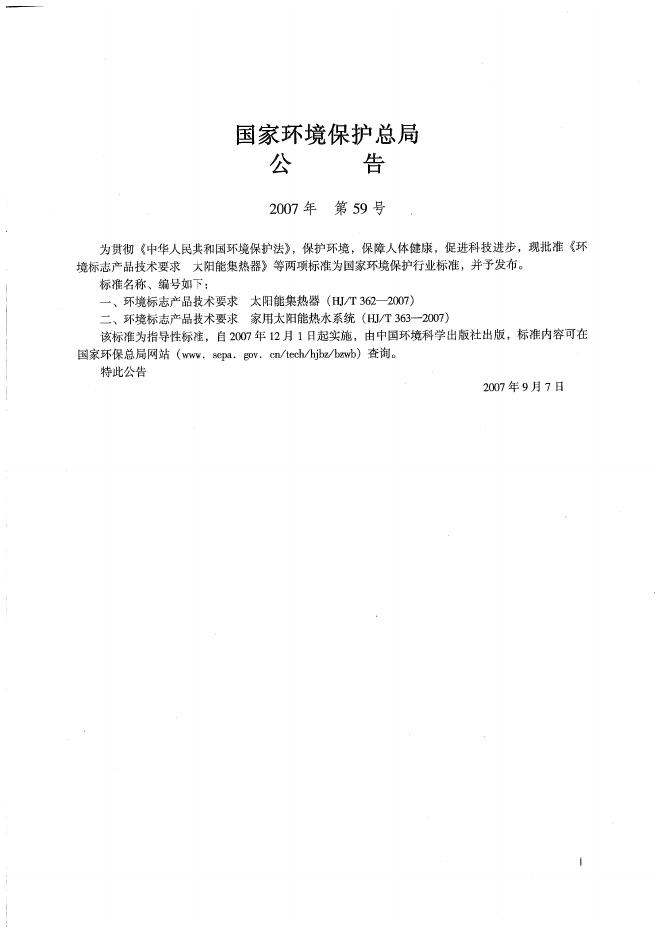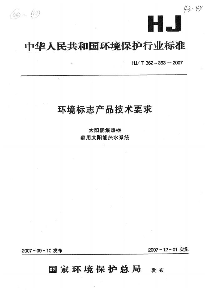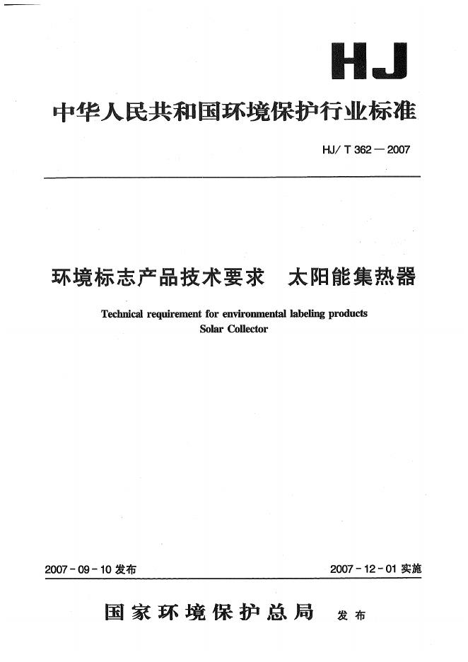 HJ/T 362-2007 环境标志产品技术要求 太阳能集热器