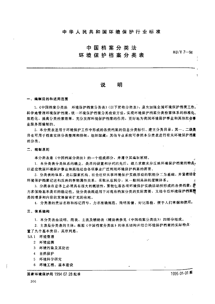 HJ/T 7-1994 中国档案分类法环境保护档案分类表