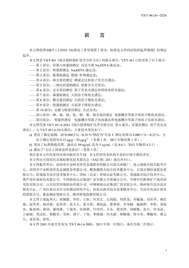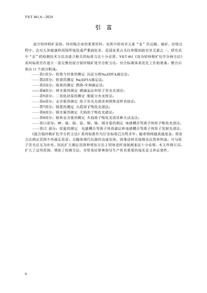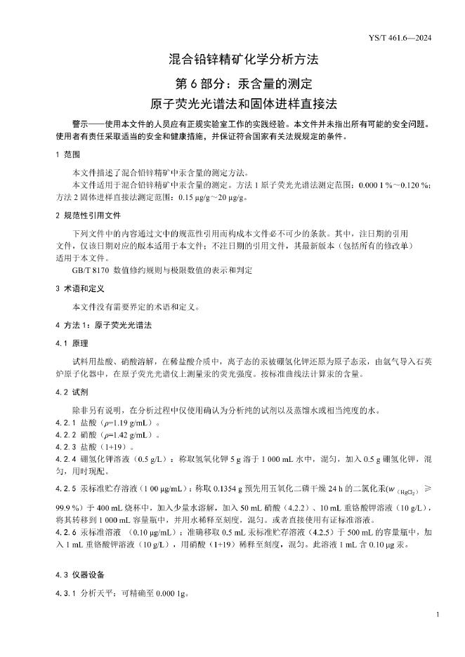 YS/T 461.6-2024 混合铅锌精矿化学分析方法 第6部分:汞含量的测定 原子荧光光谱法和固体进样直接法