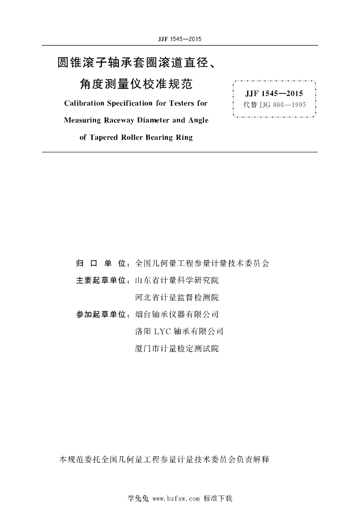 山东省计量科学研究院、河北省计量监督检测院、烟台轴承仪器有限公司、洛阳LYC轴承有限公司、厦门市计量检定测试院