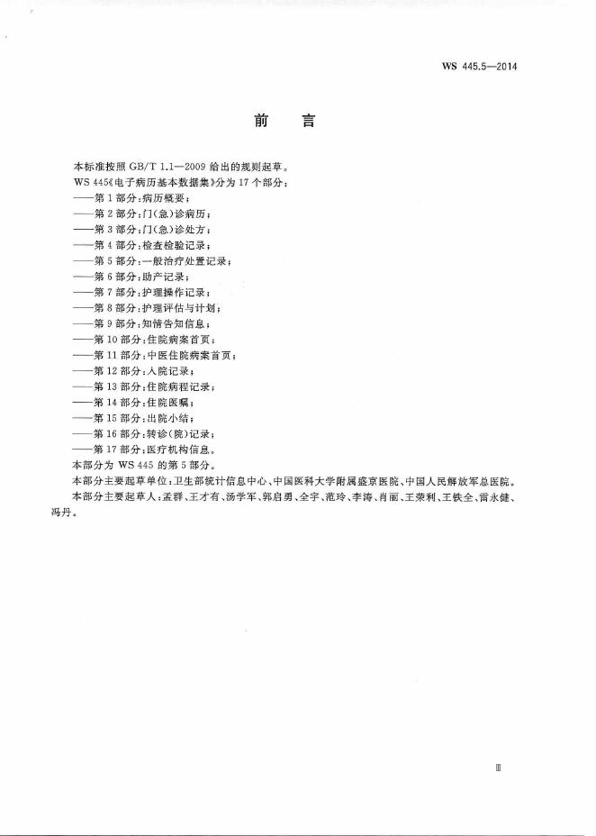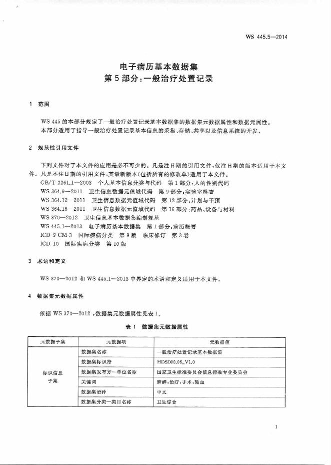 WS 445.5-2014 电子病历基本数据集 第5部分:一般治疗处置记录