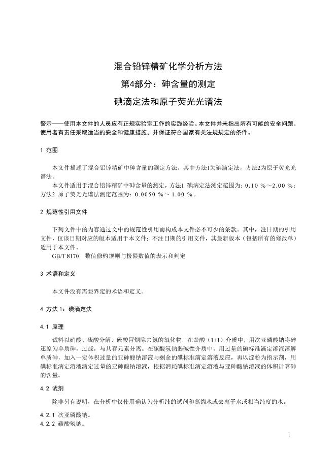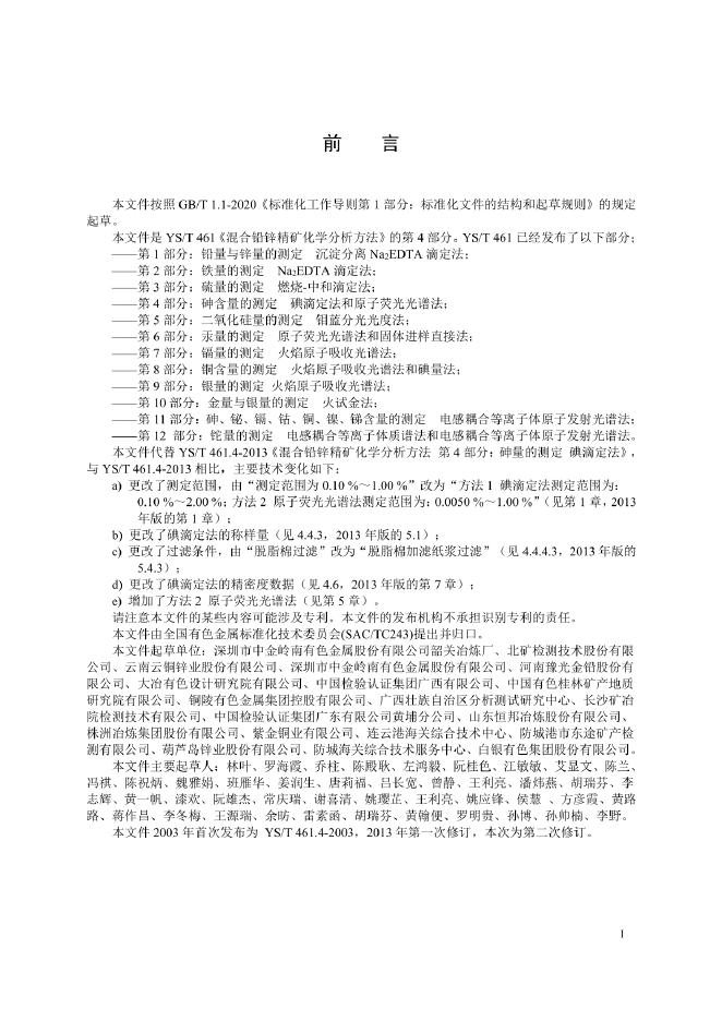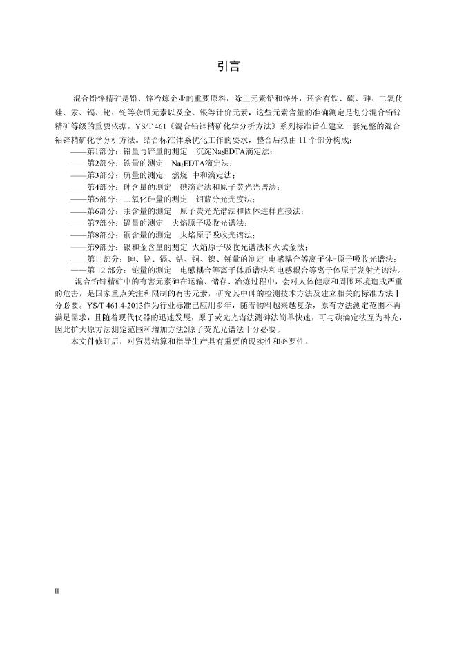 YS/T 461.4-2024 混合铅锌精矿化学分析方法 第4部分:砷含量的测定 碘滴定法和原子荧光光谱法