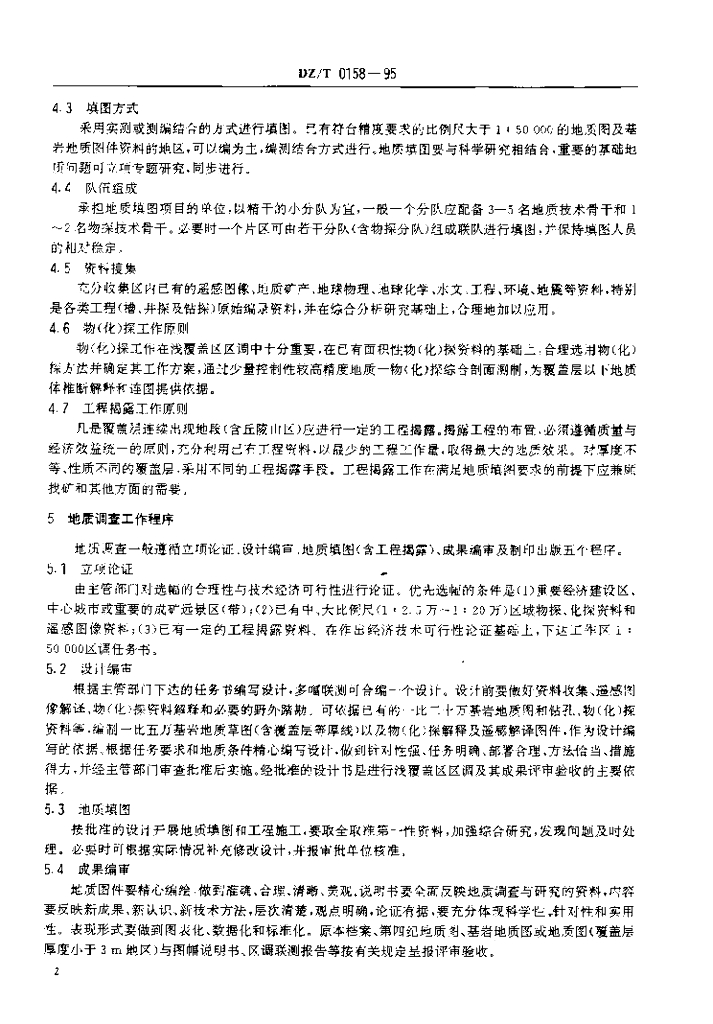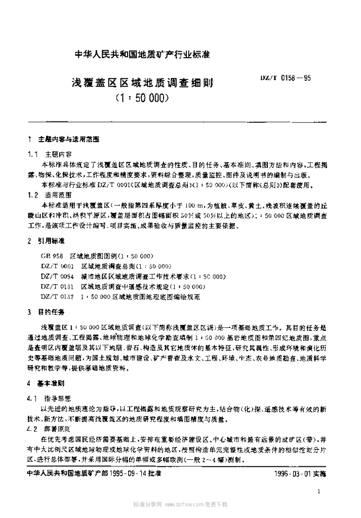 DZ/T 0158-1995 浅覆盖区区域地质调查细则(1 : 50000)