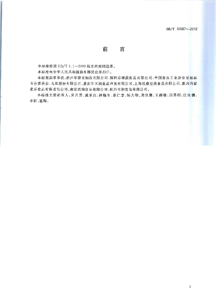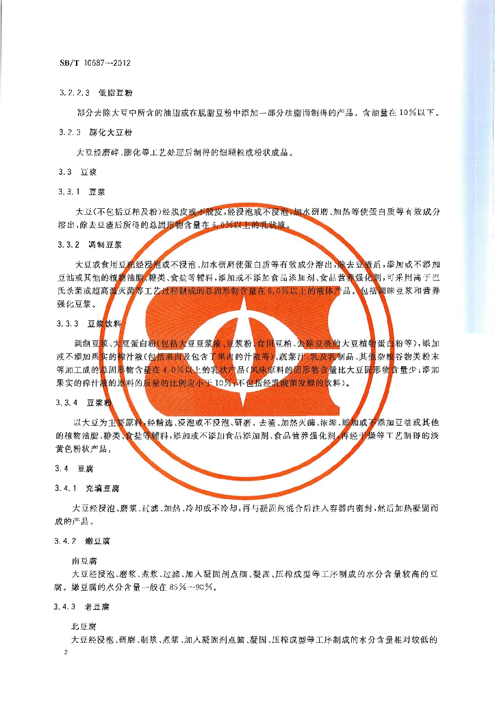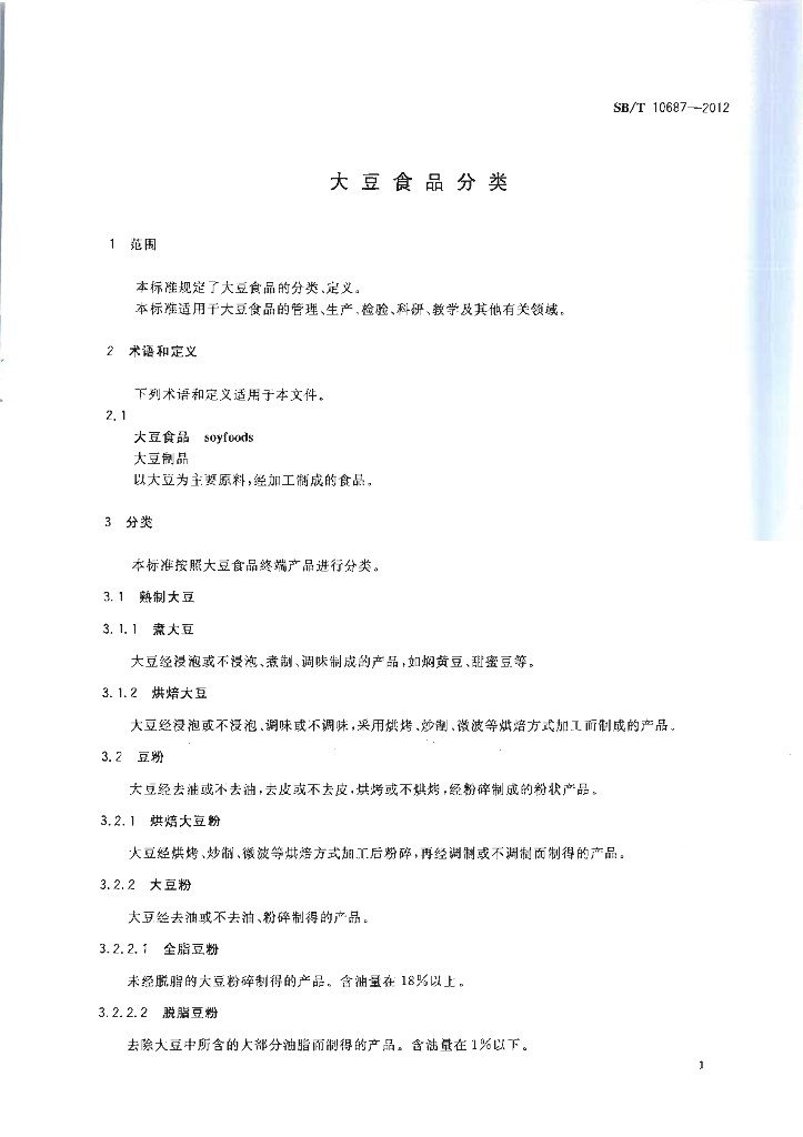 SB/T 10687-2012 大豆食品分类