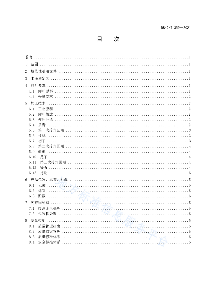 DB42/T 359-2021 条形绿茶机械化加工技术规程