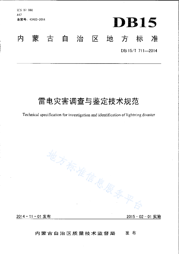 DB15/T 711-2014 雷电灾害调查与鉴定技术规范