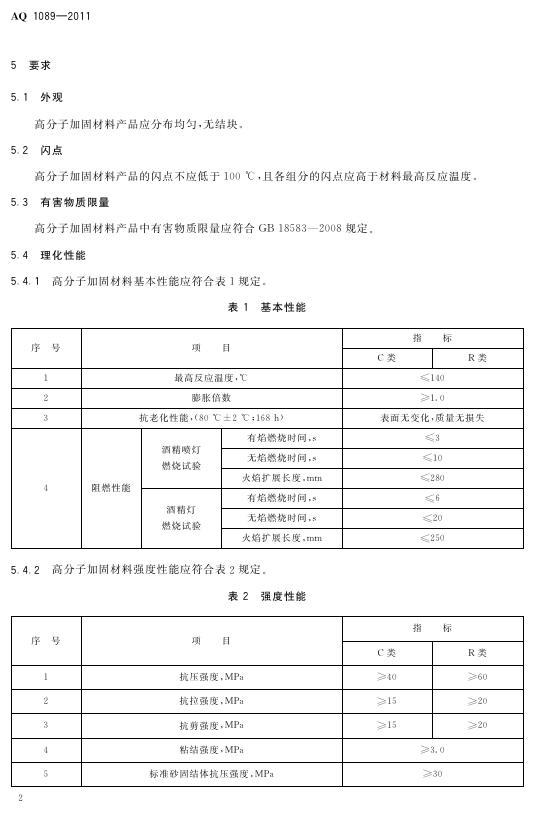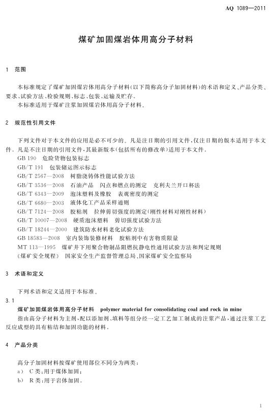 AQ 1089-2011 煤矿加固煤岩体用高分子材料