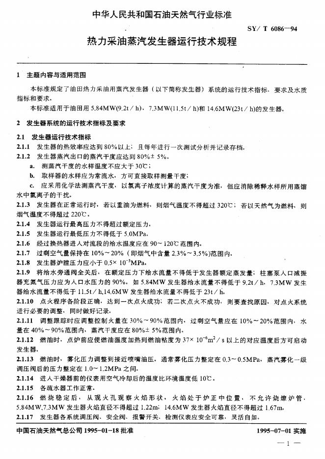 SY/T 6086-1994 热力采油蒸气发生器运行技术规程