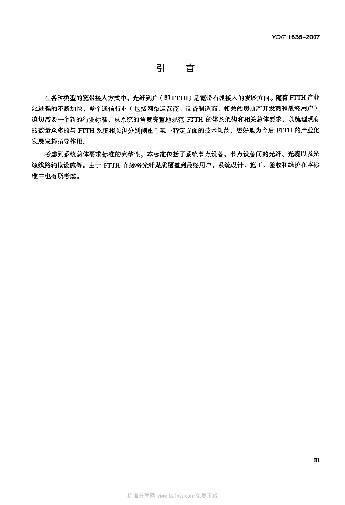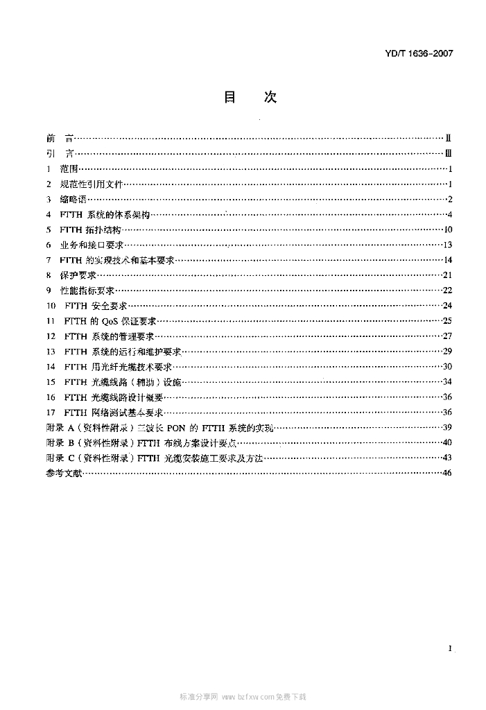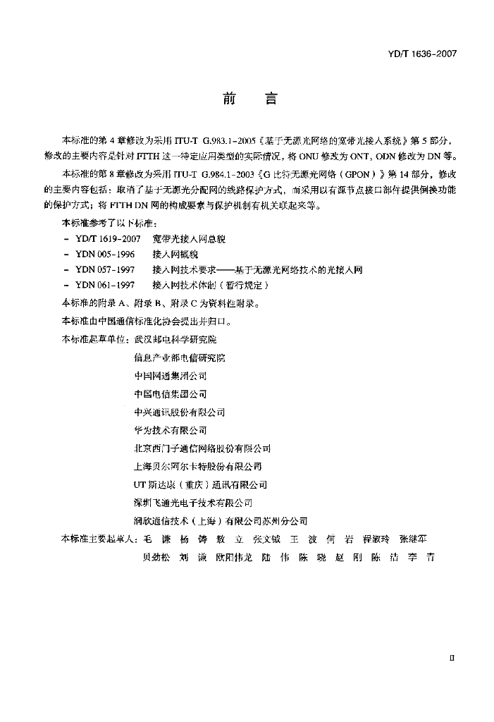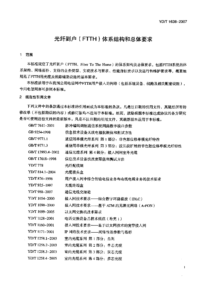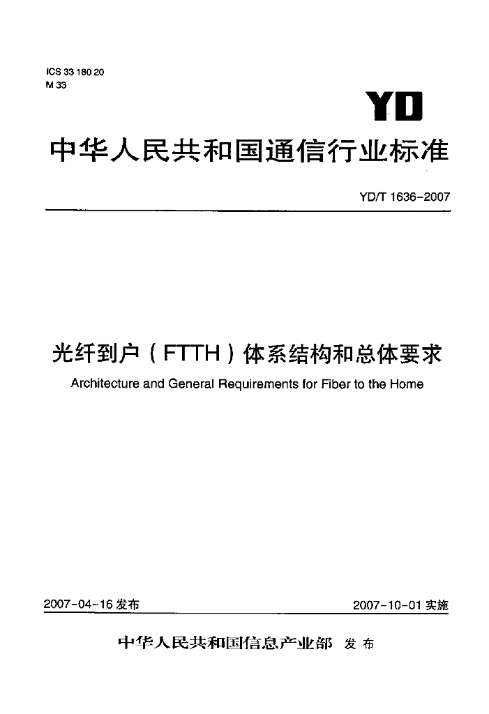 YD/T 1636-2007 光纤到户(FTTH)体系结构和总体要求