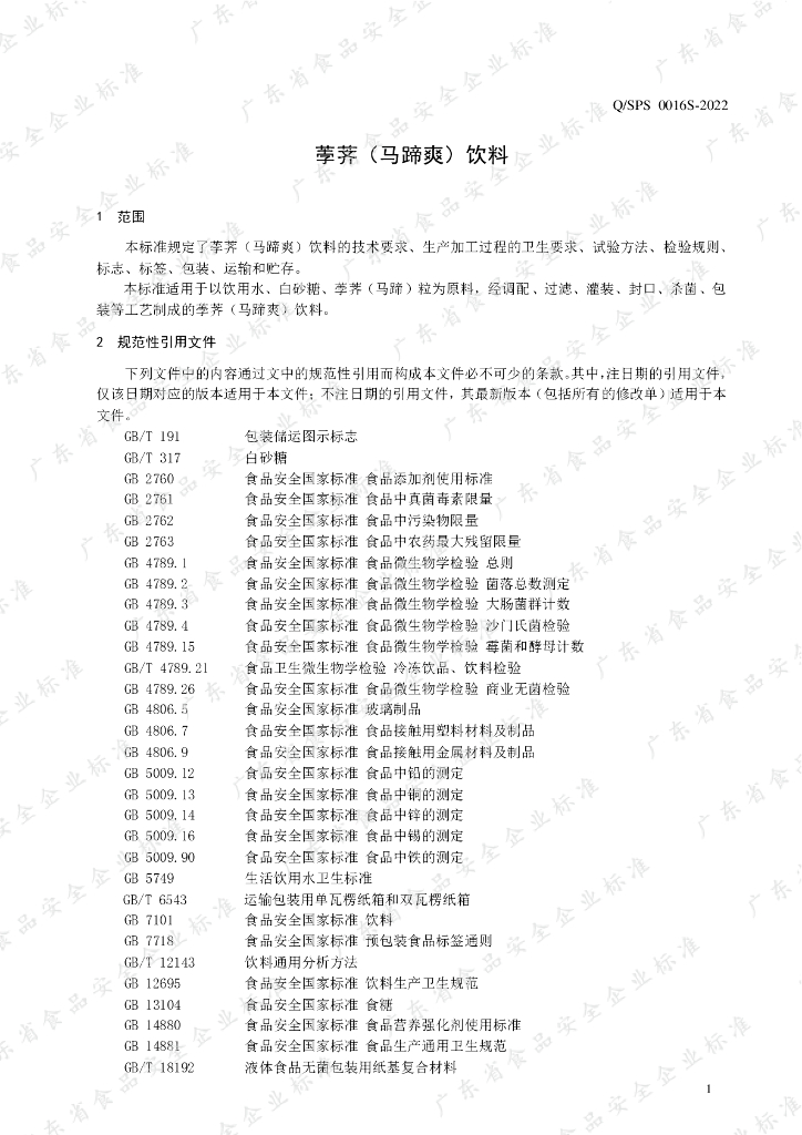 Q/SPS 0016S-2022 荸荠(马蹄爽)饮料