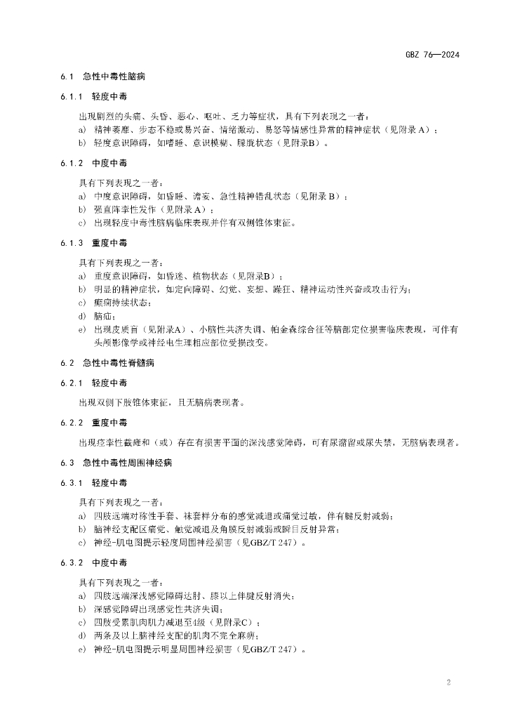 GBZ 76-2024 职业性急性化学物中毒性神经系统疾病诊断标准