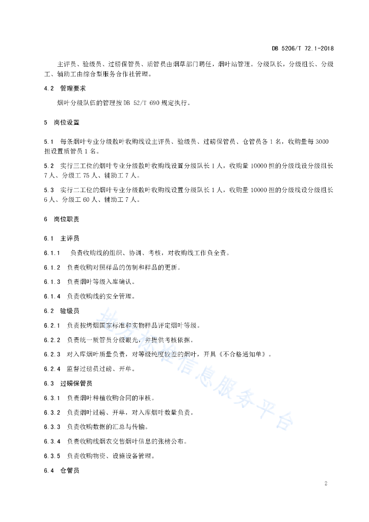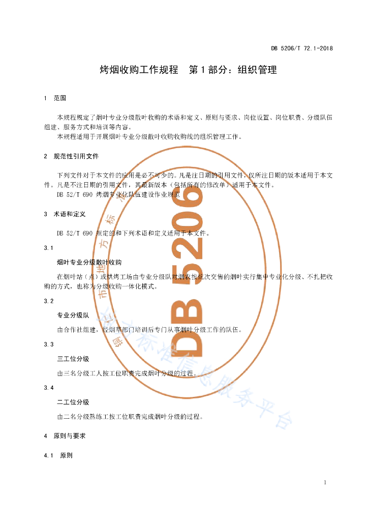 DB5206/T 72.1-2018 烤烟收购工作规程第1部分:组织管理