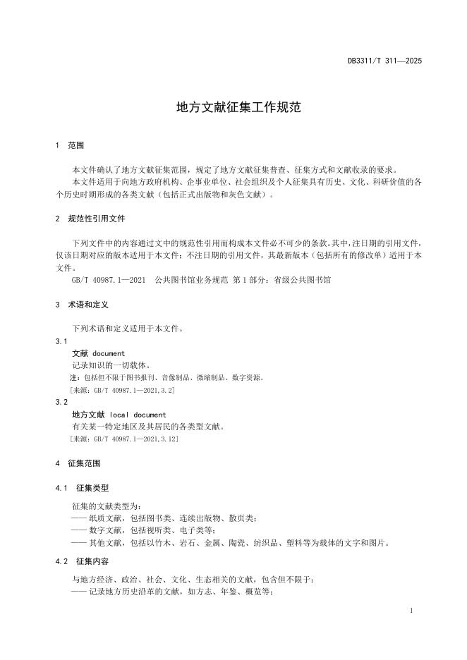 DB3311/T 311-2025 地方文献征集工作规范