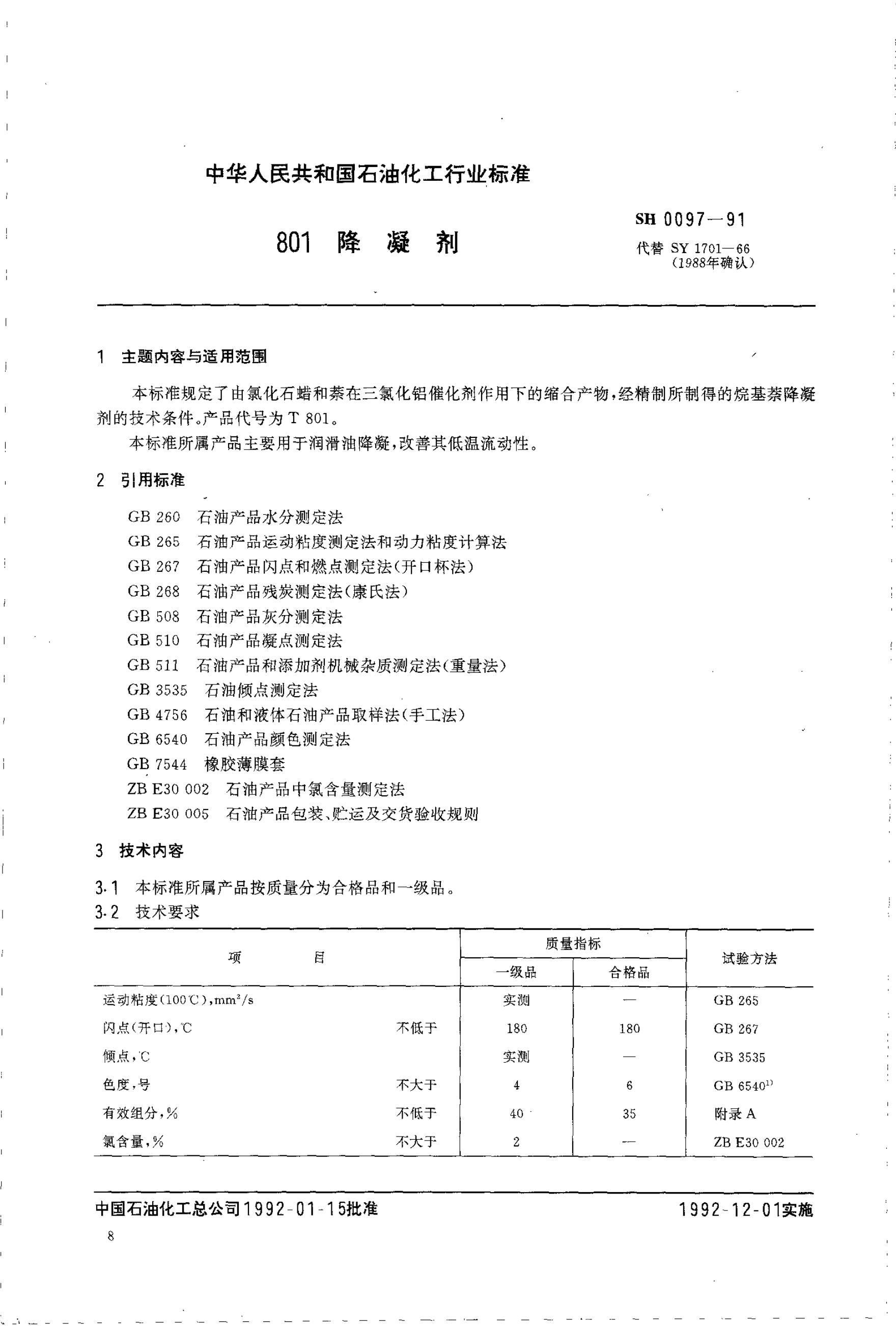 SH/T 0097-1991 801降凝剂
