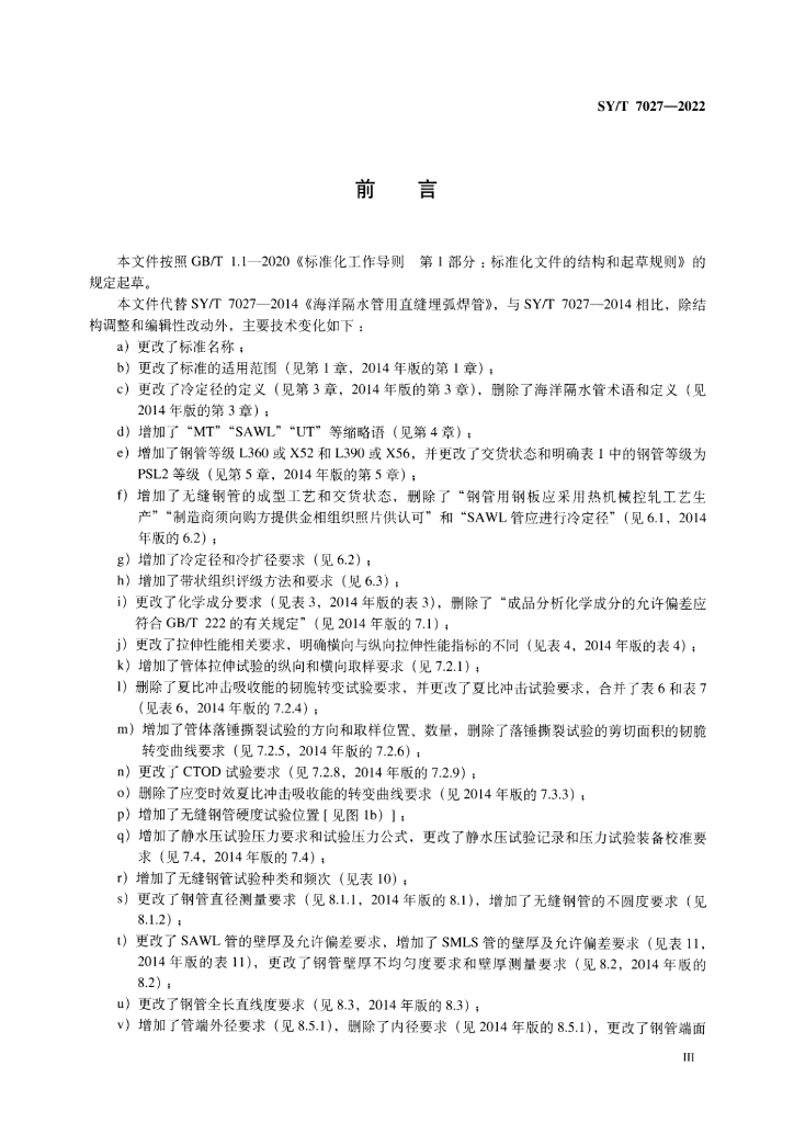- 代替标准:SY/T 7027-2014 部分代替:SY/T 7027-2014