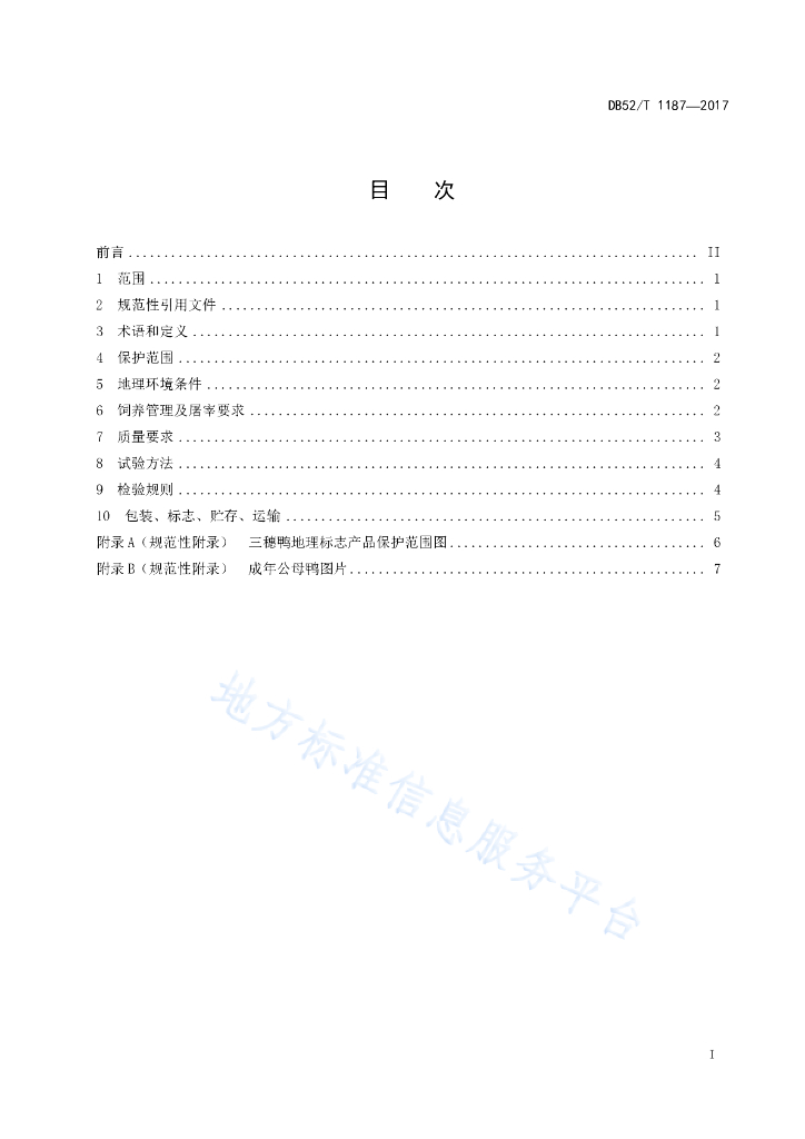 DB52/T 1187-2017 地理标志产品 三穗鸭