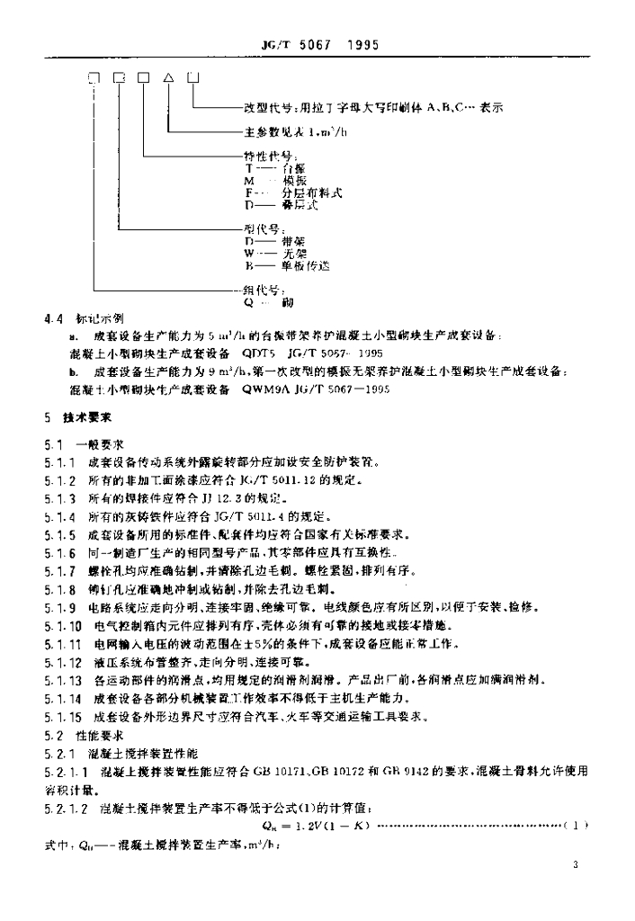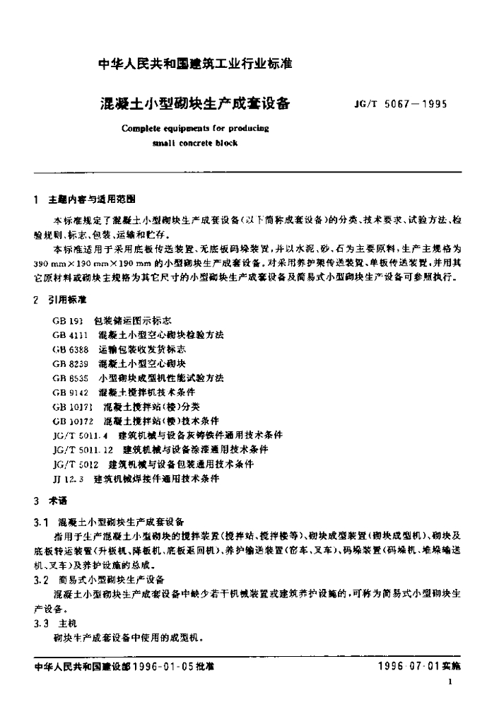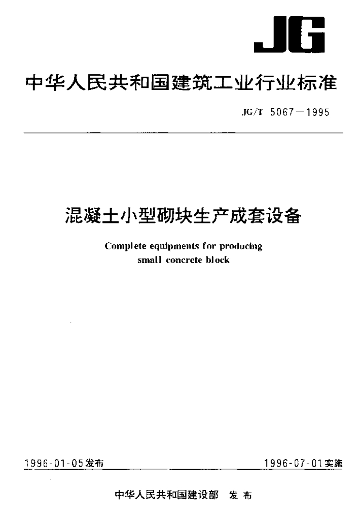 JG/T 5067-1995 混凝土小型砌块生产成套设备