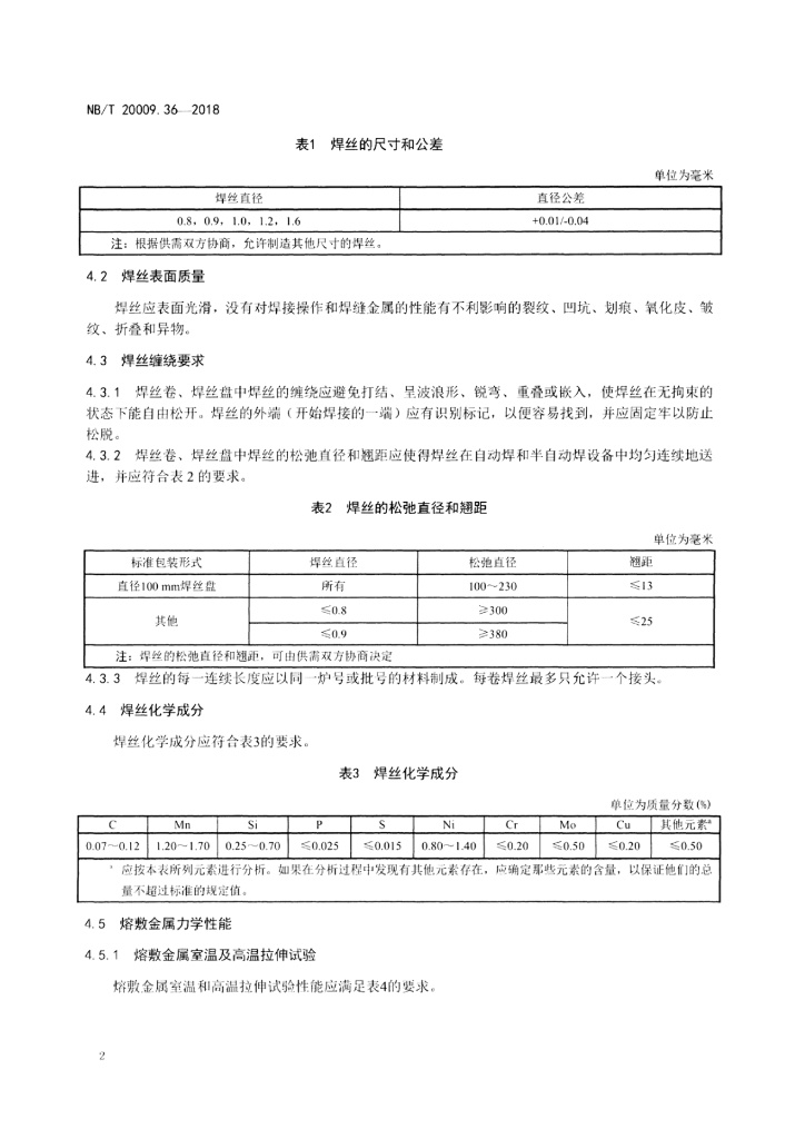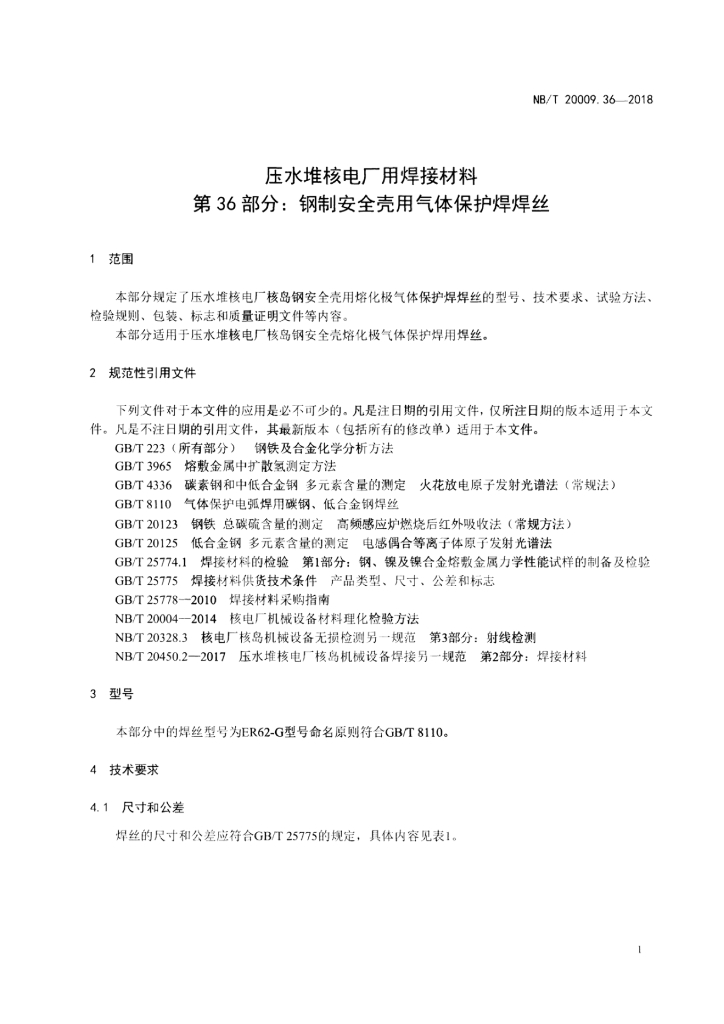 NB/T 20009.36-2018 压水堆核电厂用焊接材料 第36部分:钢制安全壳用气体保护焊焊丝