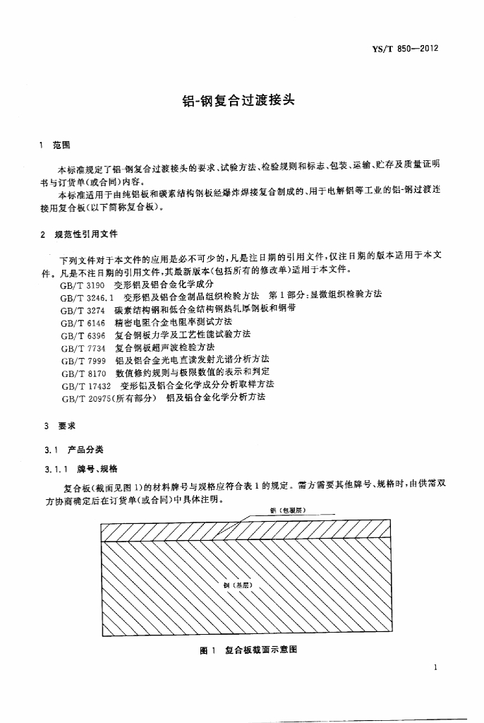 YS/T 850-2012 铝-钢复合过渡接头