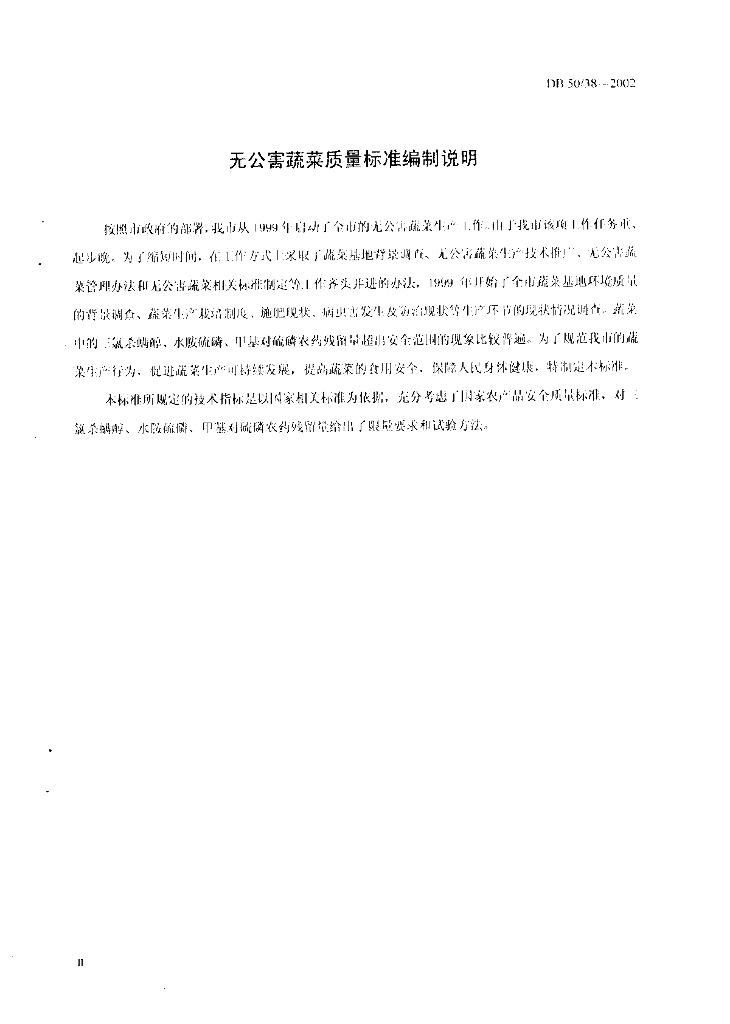 DB50/ 38-2002 无公害蔬菜质量标准