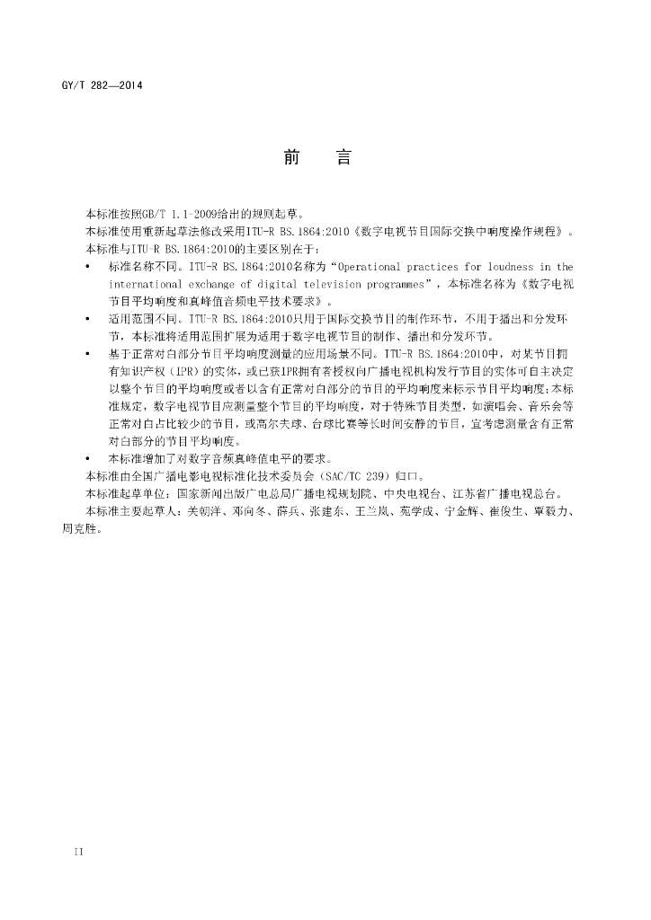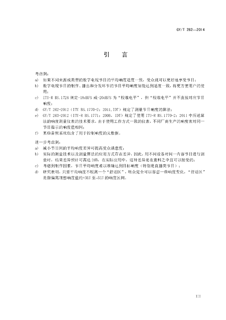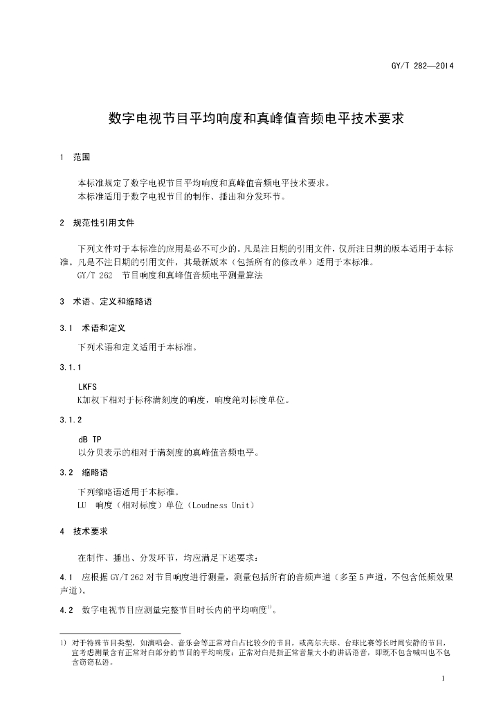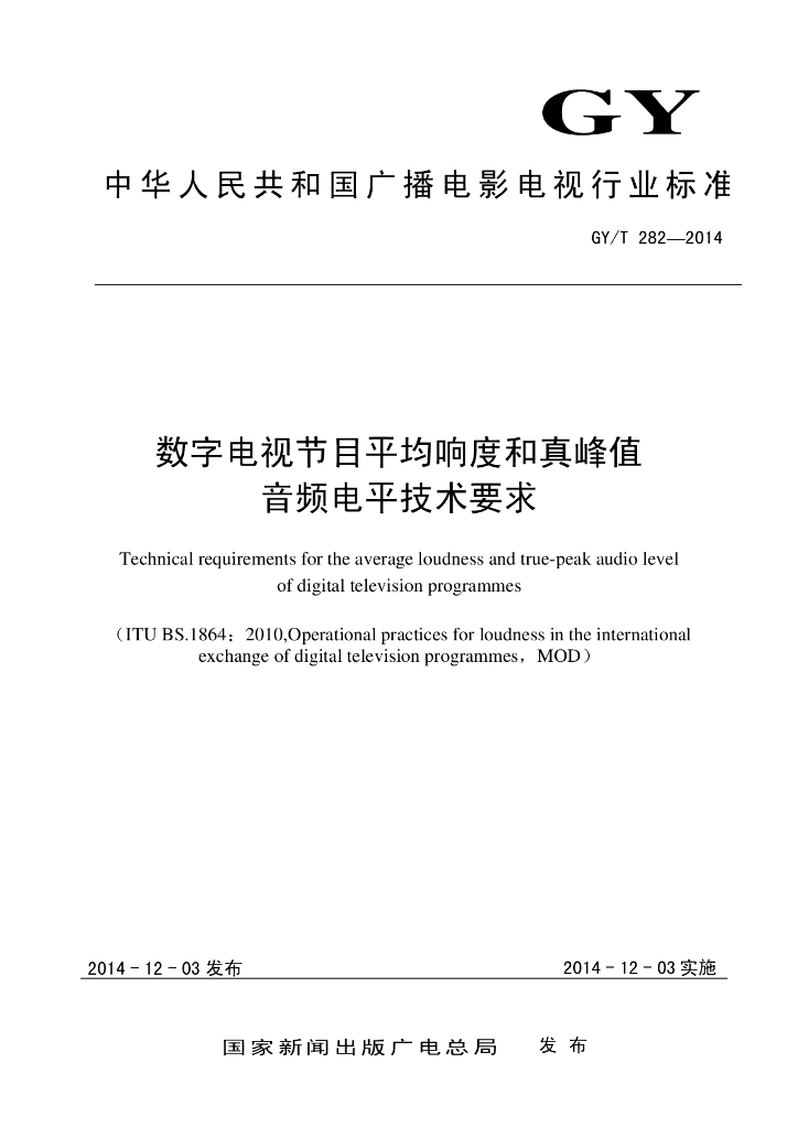 GY/T 282-2014 数字电视节目平均响度和真峰值音频电平技术要求