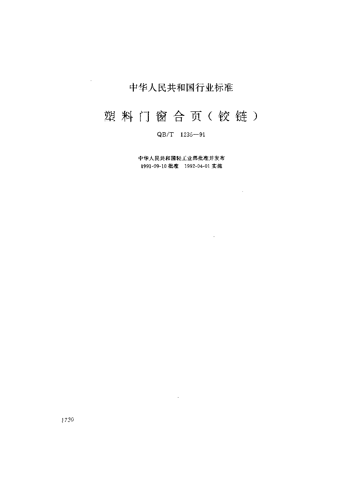QB/T 1235-1991 塑料门窗合页(饺链)