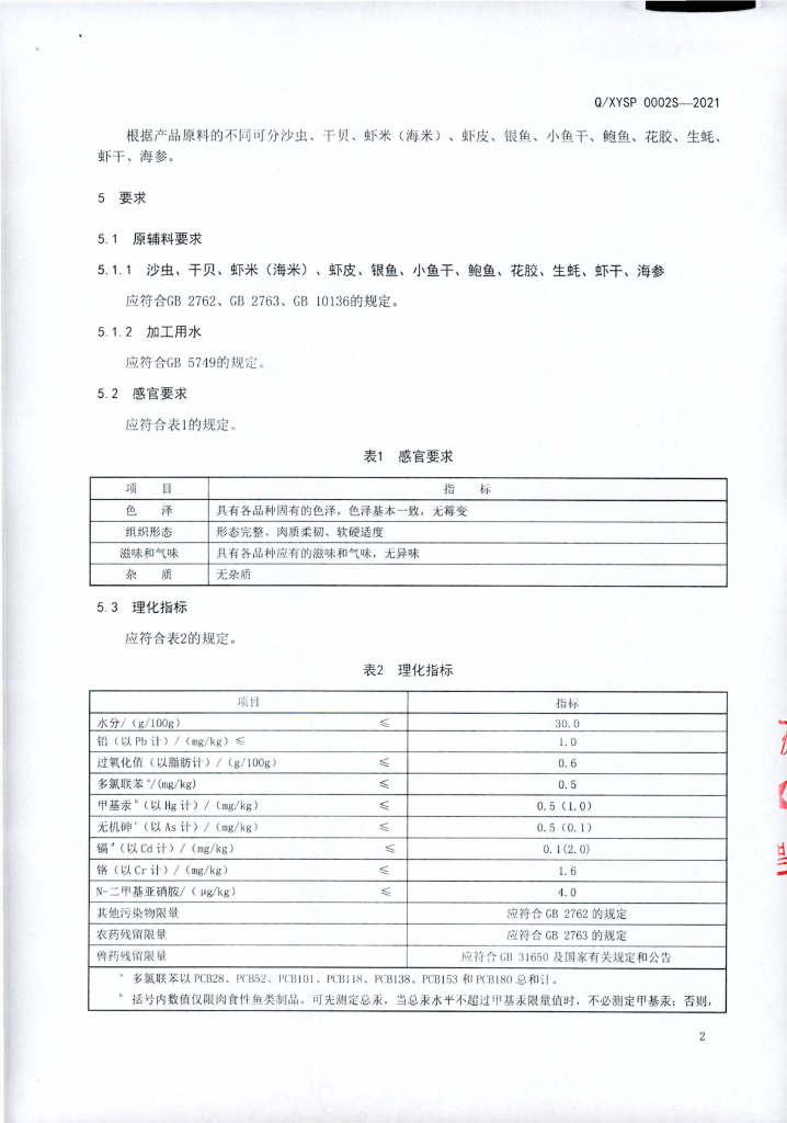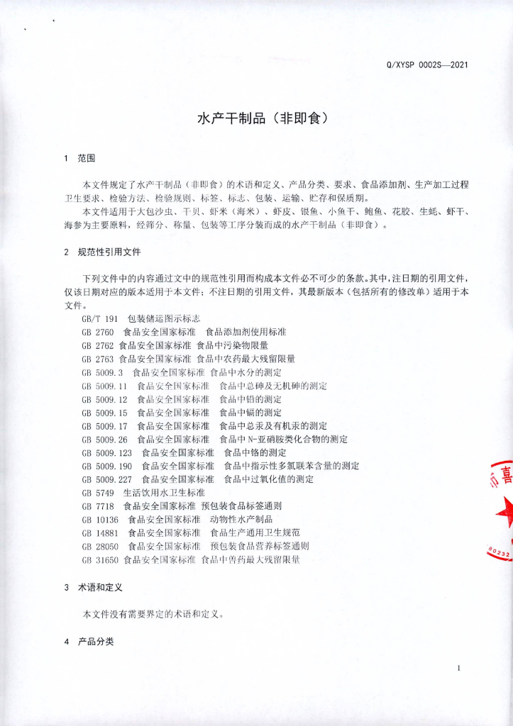 Q/XYSP 0002S-2021 水产干制品(非即食)