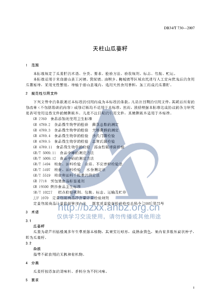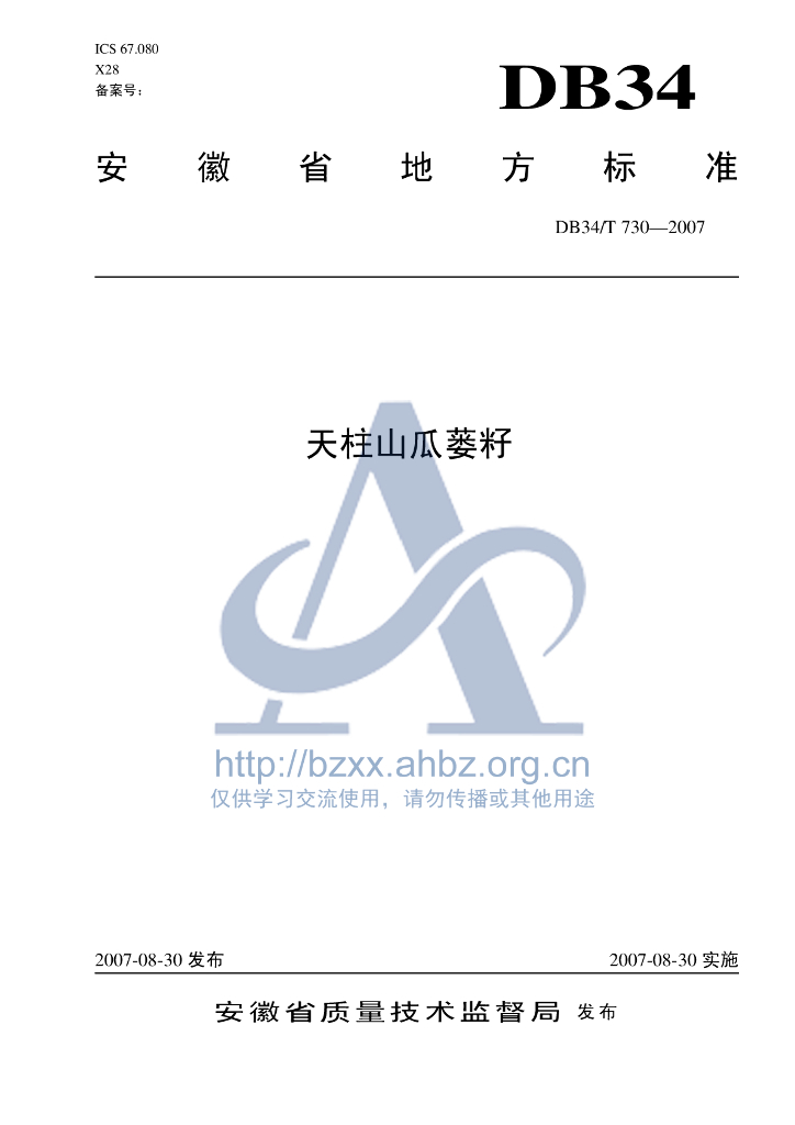 DB34/T 730-2007 天柱山瓜蒌籽