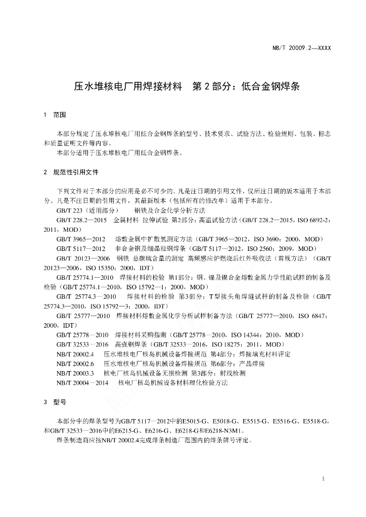 NB/T 20009.2-2021 压水堆核电厂用焊接材料 第2部分:低合金钢焊条