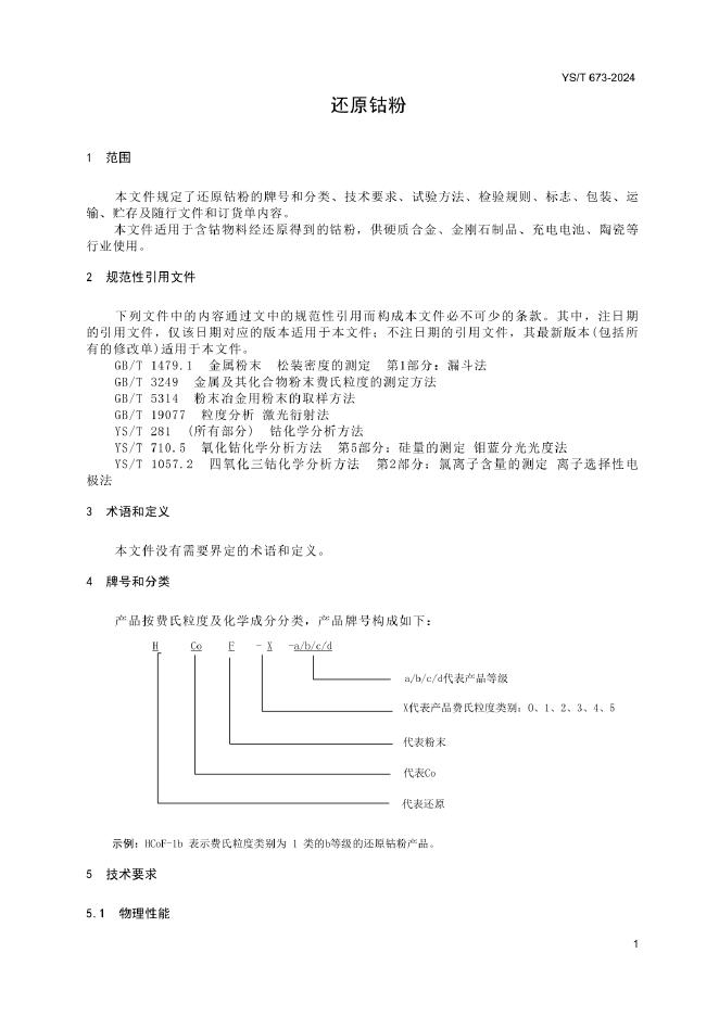 YS/T 673-2024 还原钴粉