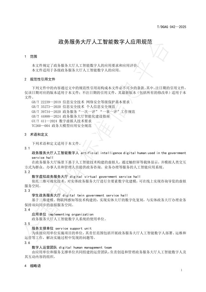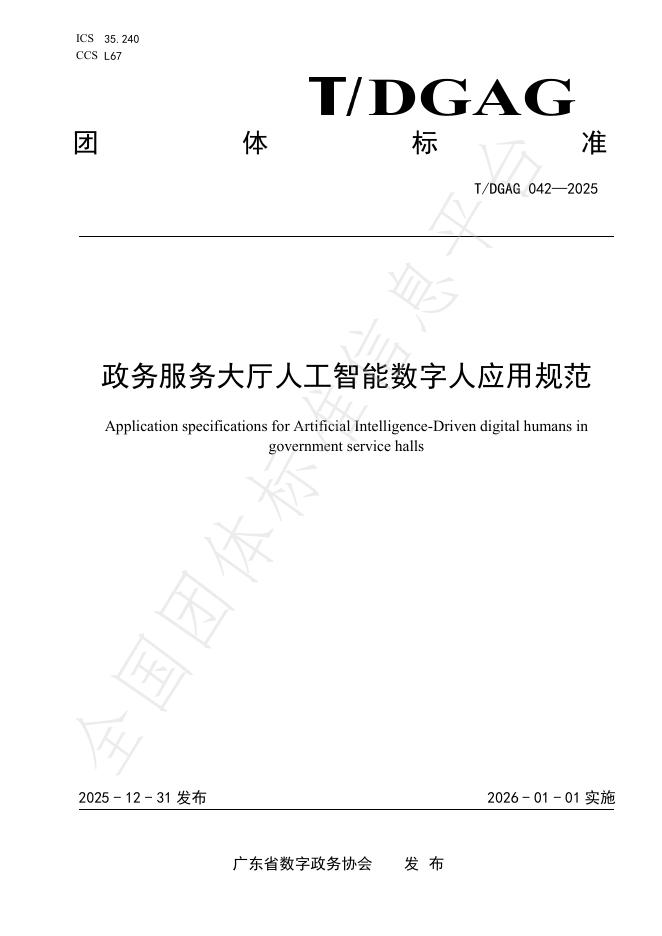 T/DGAG 042-2025 政务服务大厅人工智能数字人应用规范