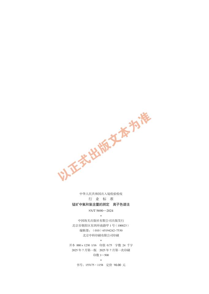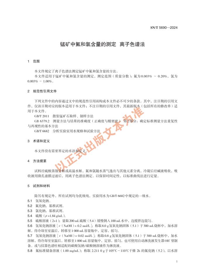SN/T 5690-2024 锰矿中氟和氯含量的测定 离子色谱法