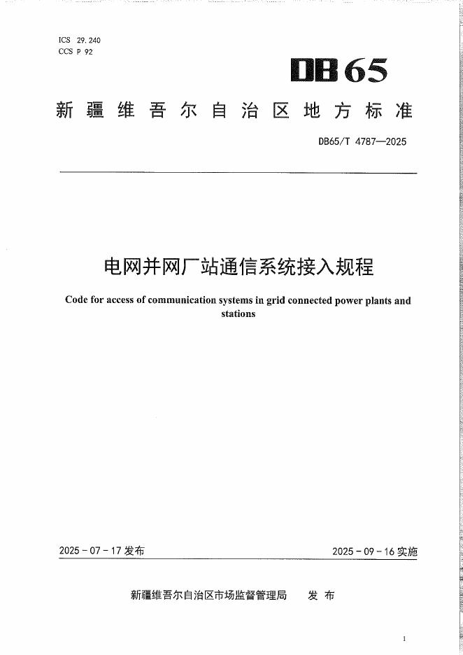 DB65/T 4787-2025 电网并网厂站通信系统接入规程