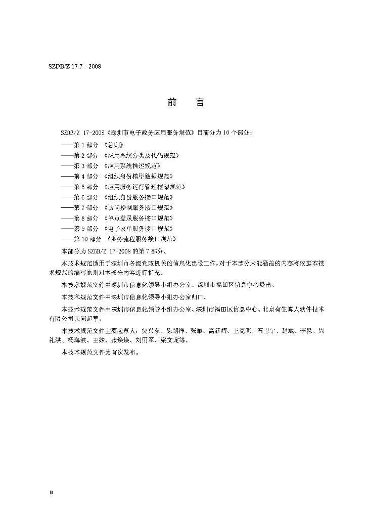 SZDB/Z 17.7-2008 深圳市电子政务应用服务规范 第7部分:访问控制服务接口规范