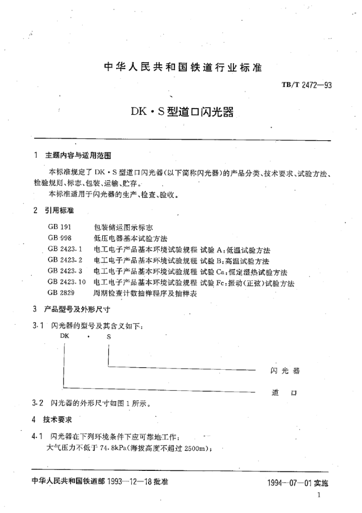 TB/T 2472-1993 DK●S型道口闪光器