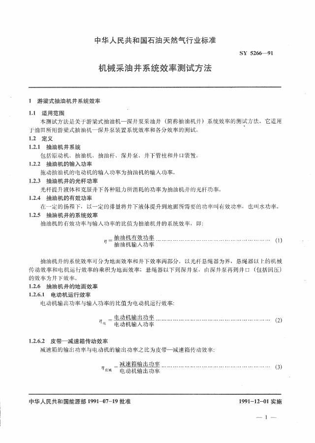 SY 5266-1991 机械采油井系统效率测试方法