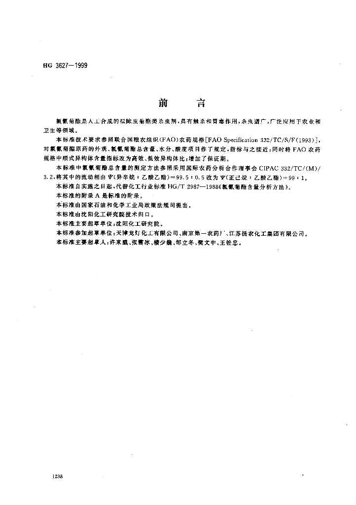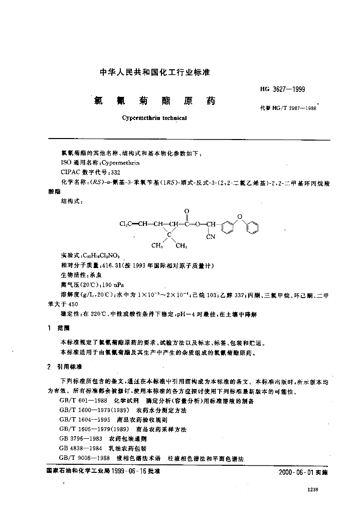 HG/T 3627-1999 氯氰菊酯原药