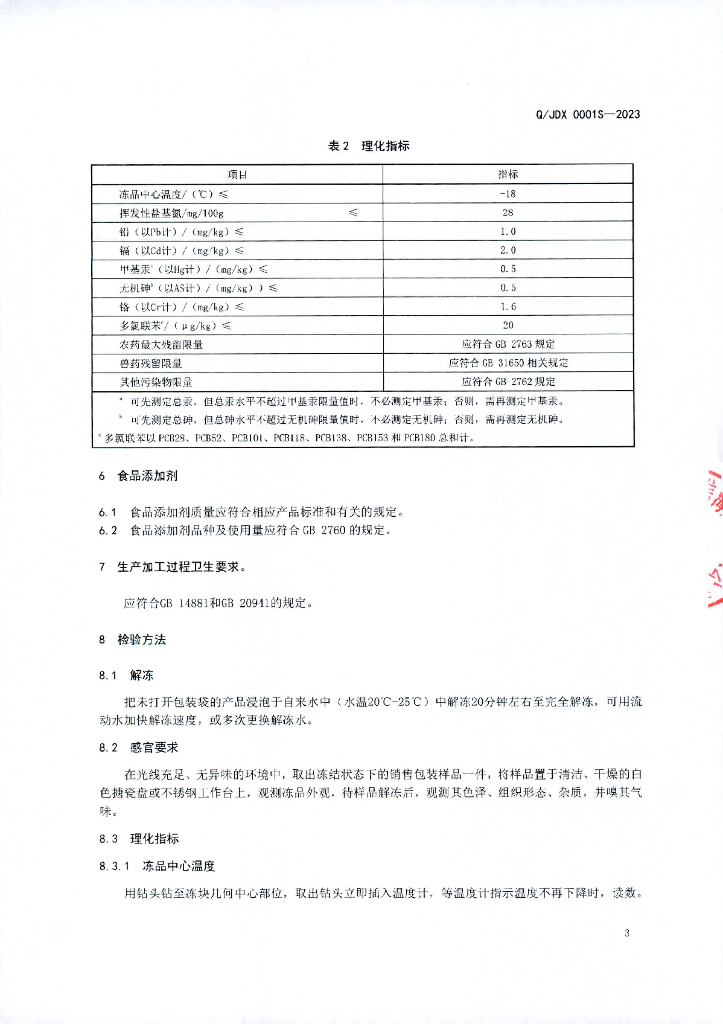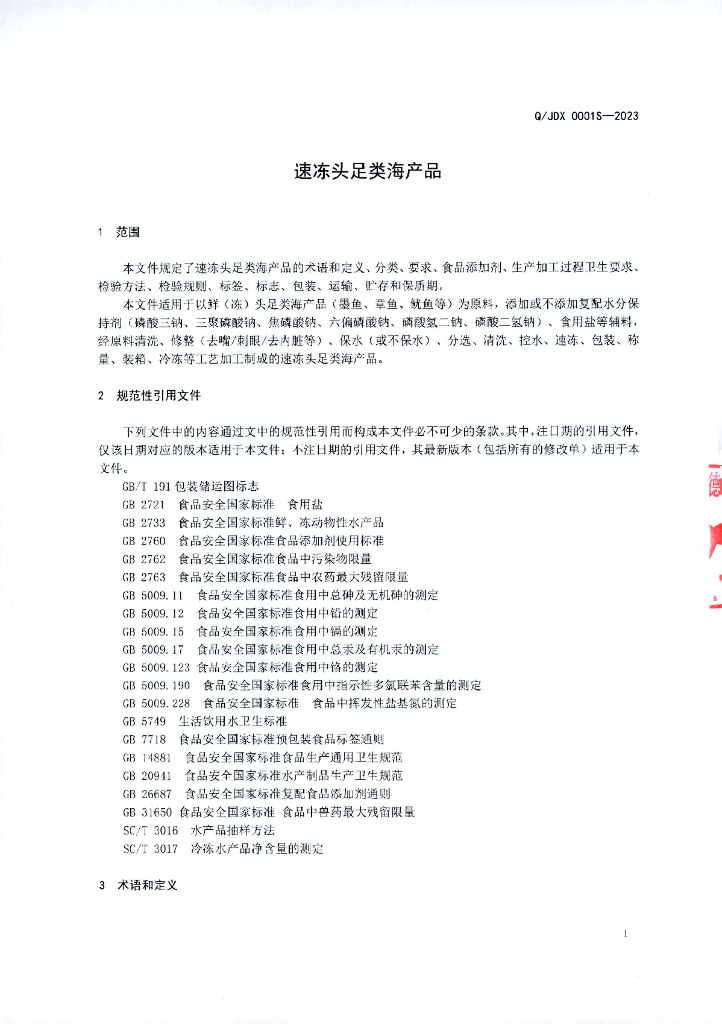 Q/JDX 0001S-2023 速冻头足类海产品