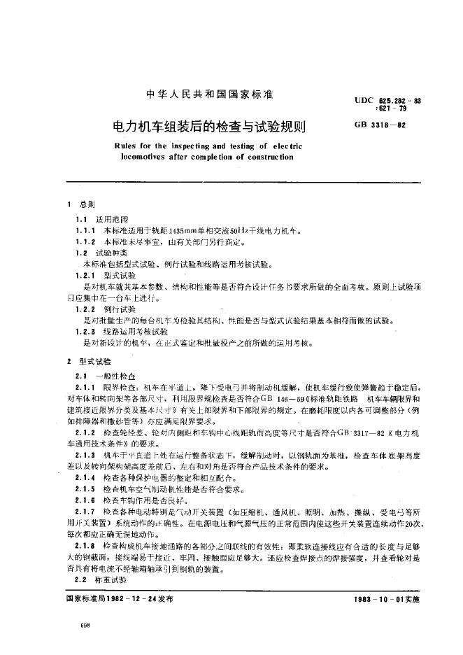 GB/T 3318-1982 电力机车组装后的检查与试验规则