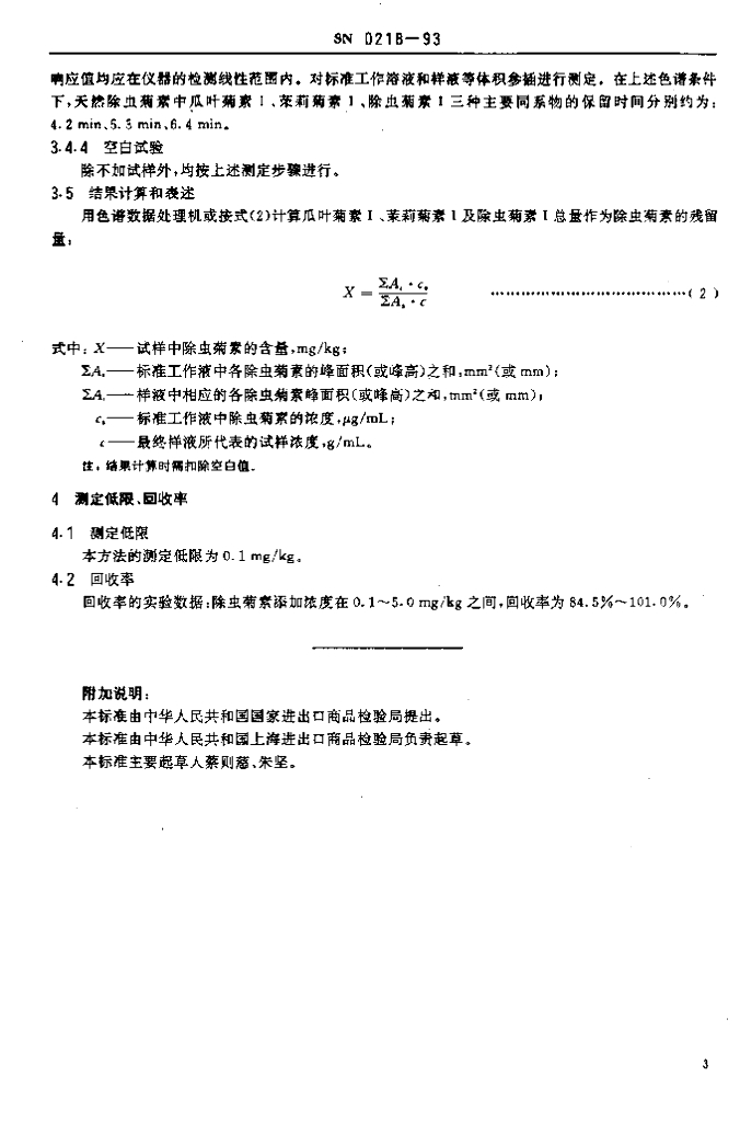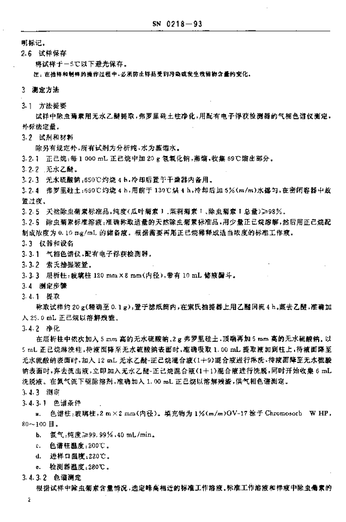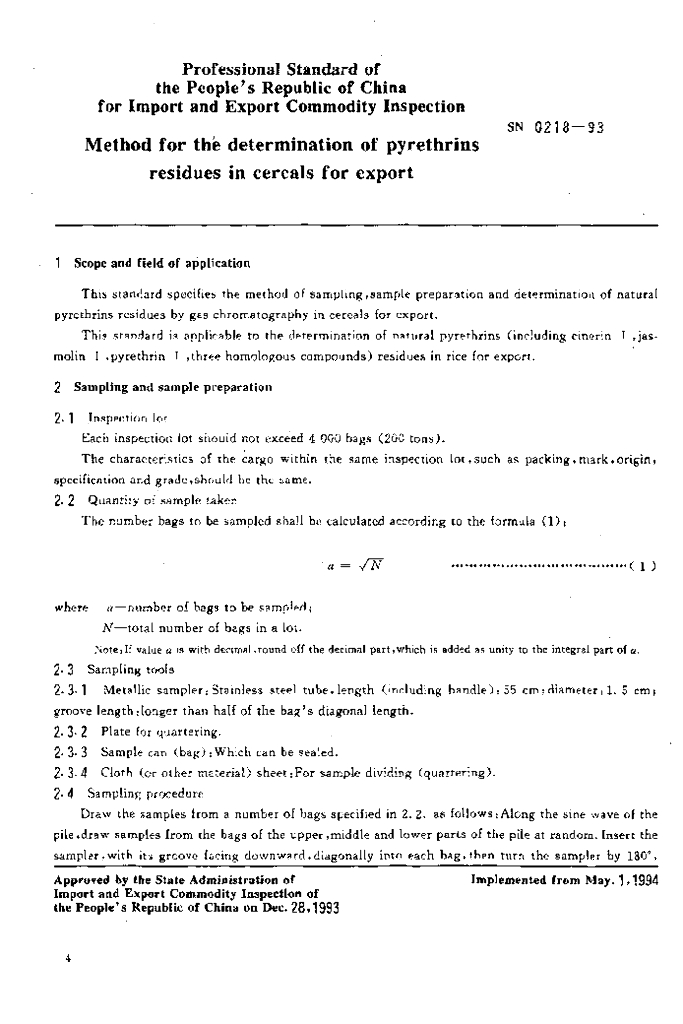 SN 0218-1993 出口粮谷中天然除虫菊素残留量检验方法