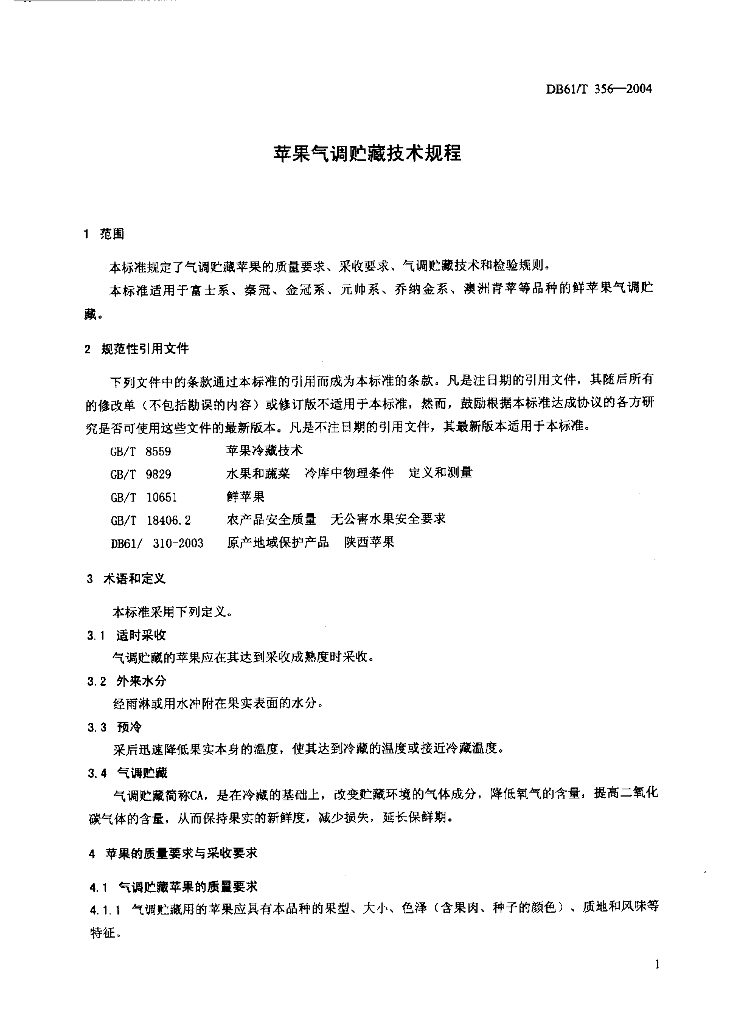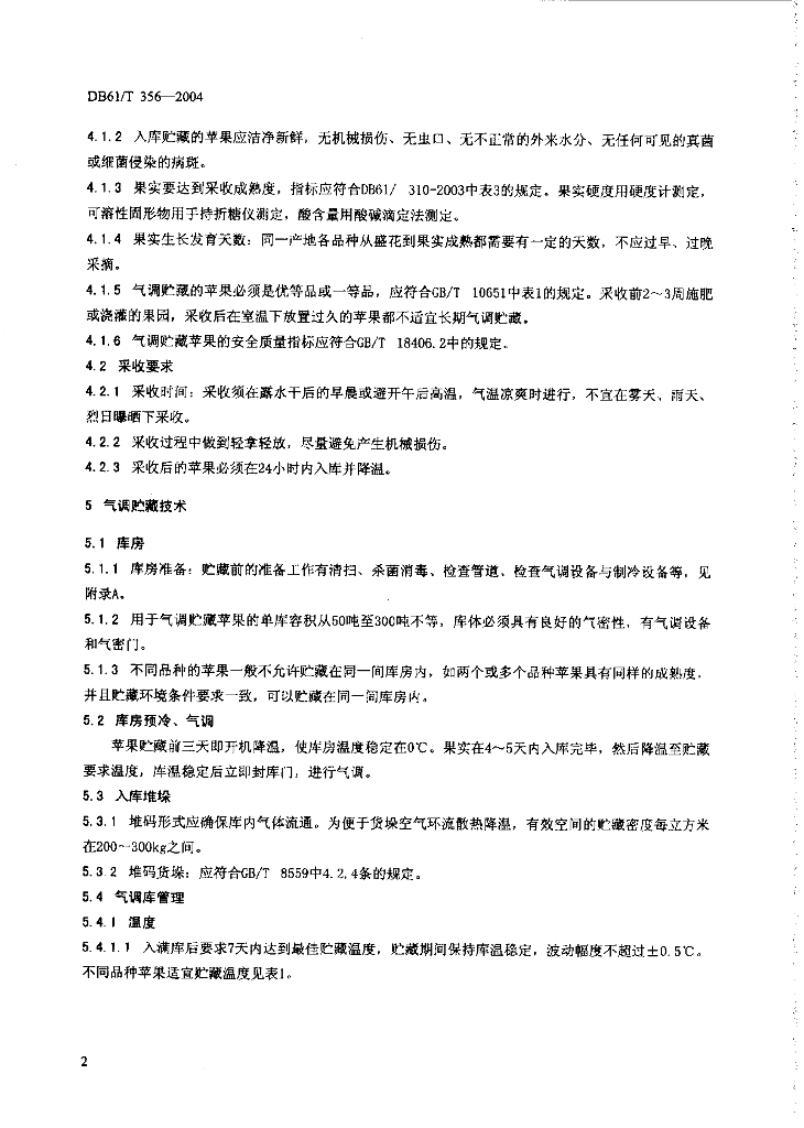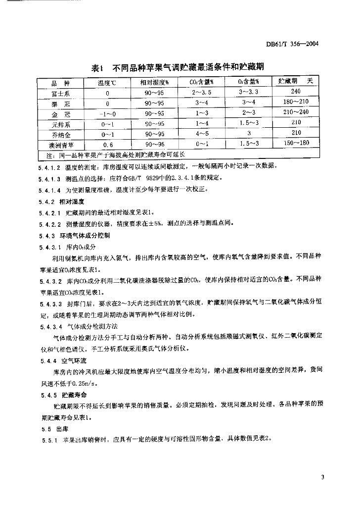 DB61/T 356-2004 苹果气调贮藏技术规程