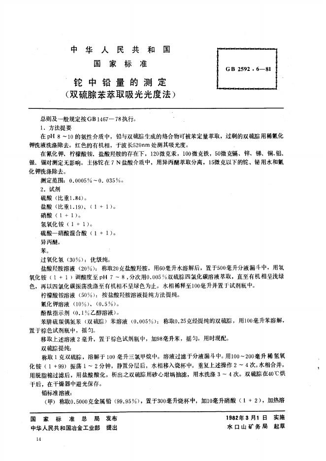 GB/T 2592.6-1981 铊中铅量的测定 双硫腙苯萃取吸光光度法