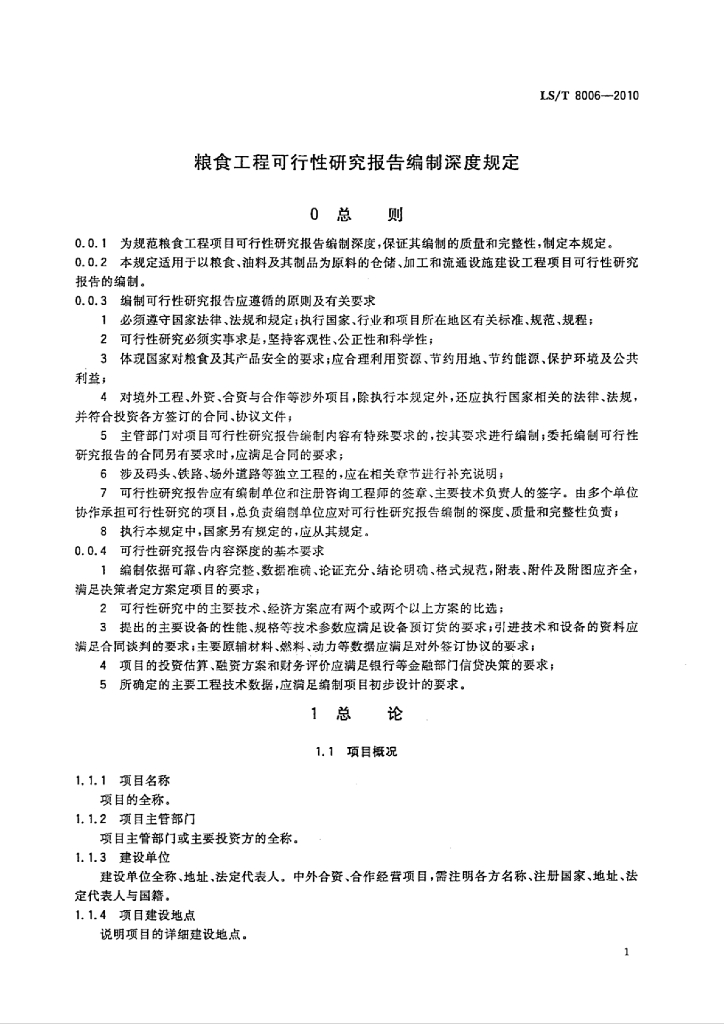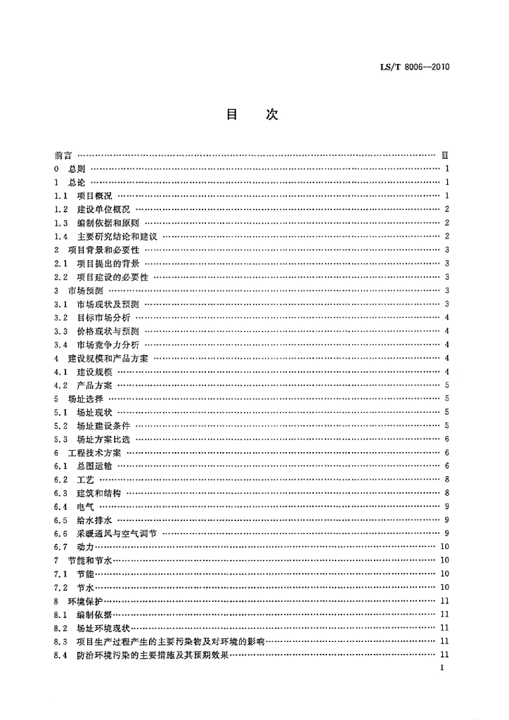 LS/T 8006-2010 粮食工程可行性研究报告编制深度规定