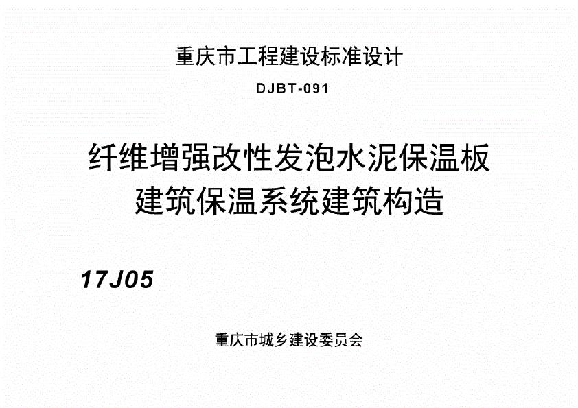 渝17J05 纤维增强改性发泡水泥保温板建筑保温系统建筑构造图集(DJBT-091)