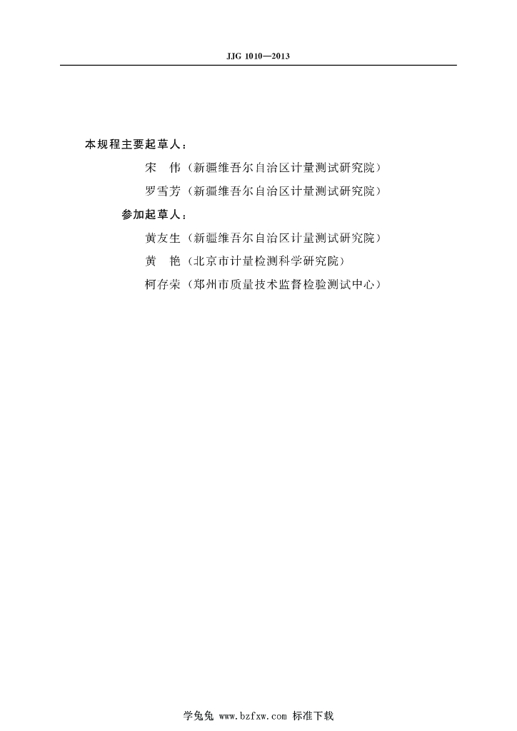 宋伟(新疆维吾尔自治区计量测试研究院)、罗雪芳(新疆维吾尔自治区计量测试研究院)、黄友生 (新疆维吾尔自治区计量测试研究院)、黄艳(北京市计量检测科学研究院)、柯存荣(郑州市质量技术监督检验测试中心)