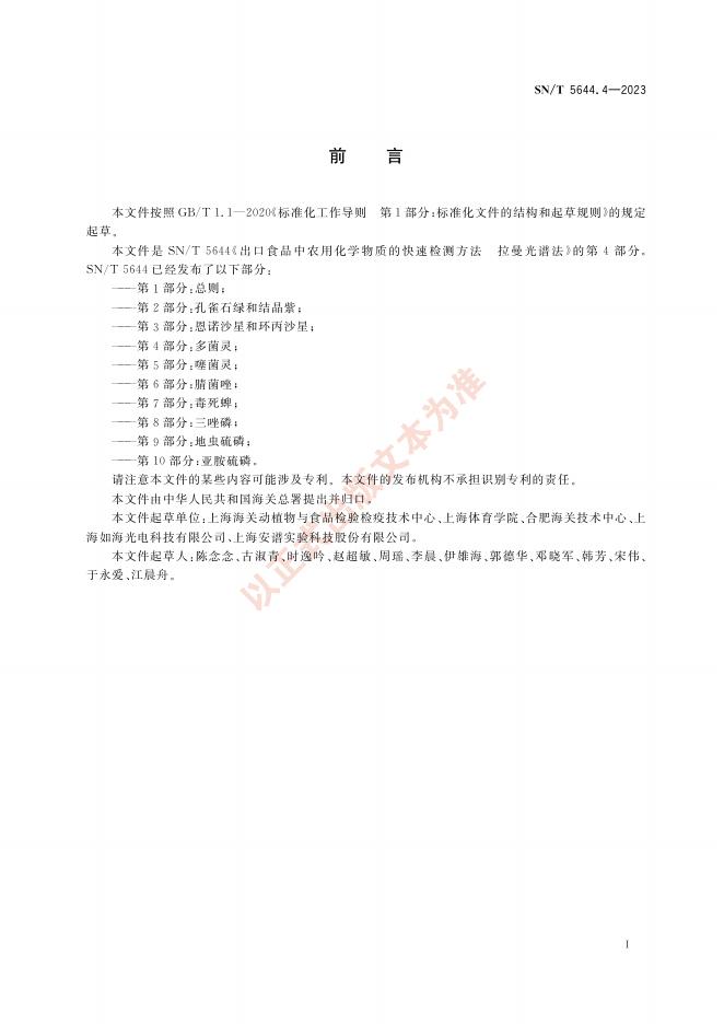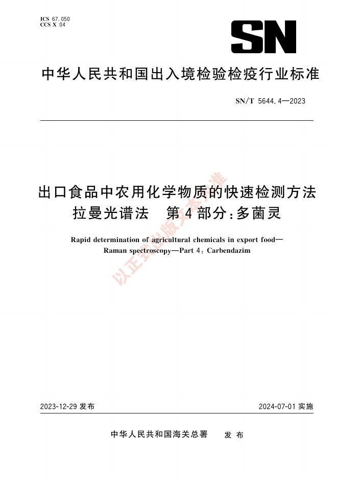 SN/T 5644.4-2023 出口食品中农用化学物质的快速检测方法 拉曼光谱法 第4部分:多菌灵