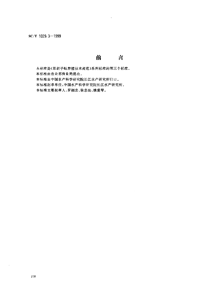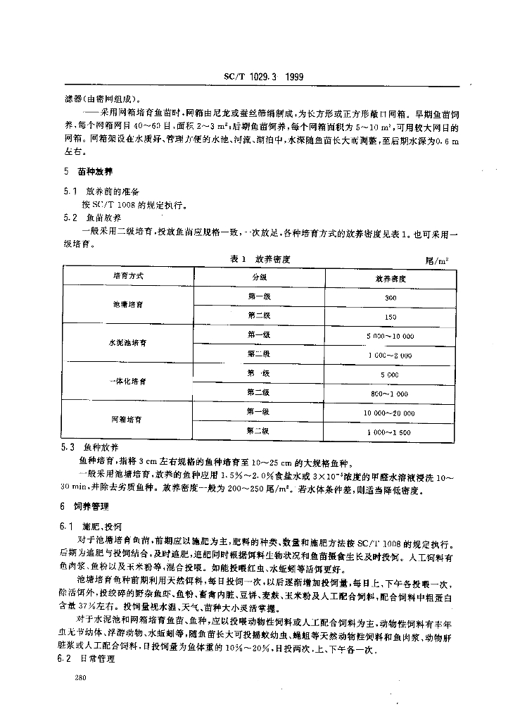 SC/T 1029.3-1999 革胡子鲇养殖技术规范 鱼苗鱼种培育技术